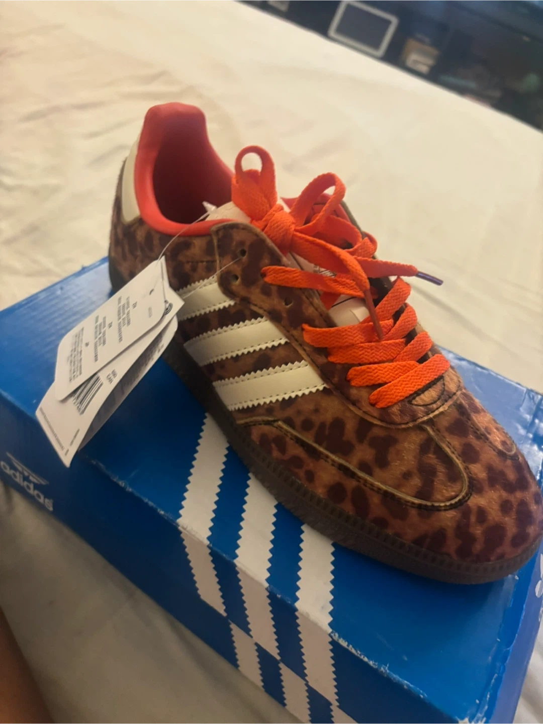 Adidas Samba sneakers with a unique leopard print design! The shoes are in great condition and come with the original box. Perfect for adding a stylish touch to your outfit