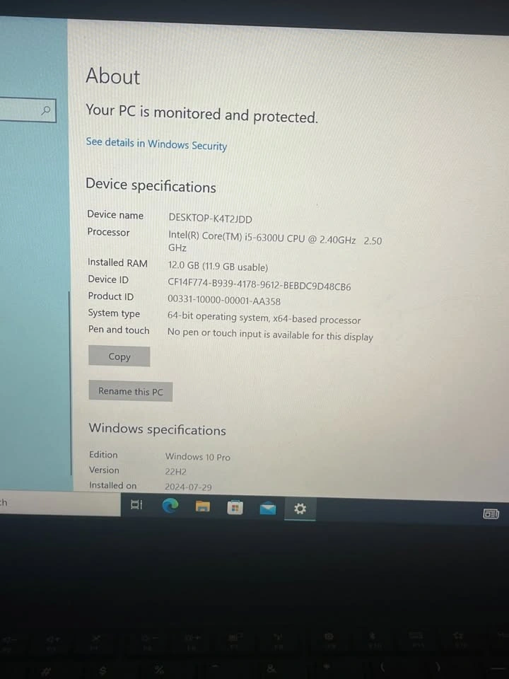 - Processor: Intel Core i5-6300U CPU @ 2.40GHz