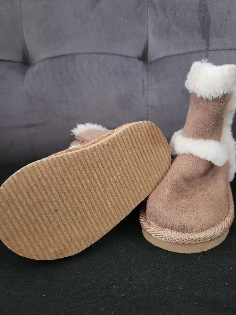 242These adorable toddler girl's winter boots are in great condition. They are a size 3 and feature a soft, plush lining to keep little feet warm and cozy during the colder months. The boots have a cute, stylish design with a pink exterior and white faux fur trim. Perfect for your little one!