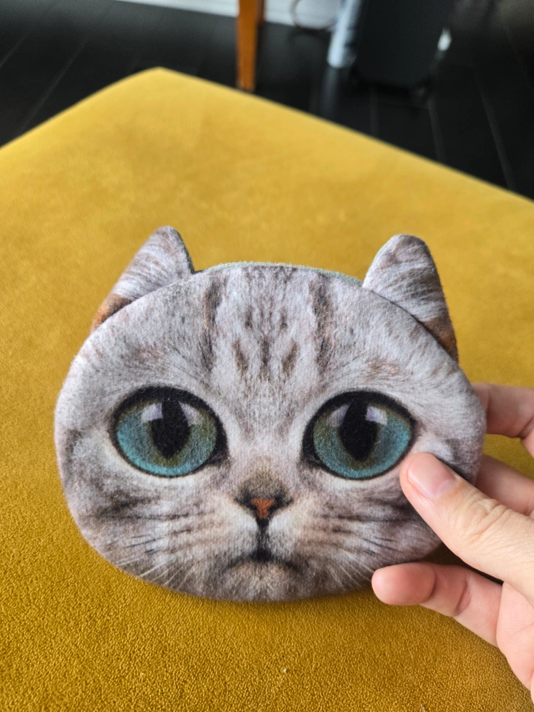 128Super cute cat face coin purse! It's in great condition and ready for a new home. Perfect for holding your change, cards, or small treasures