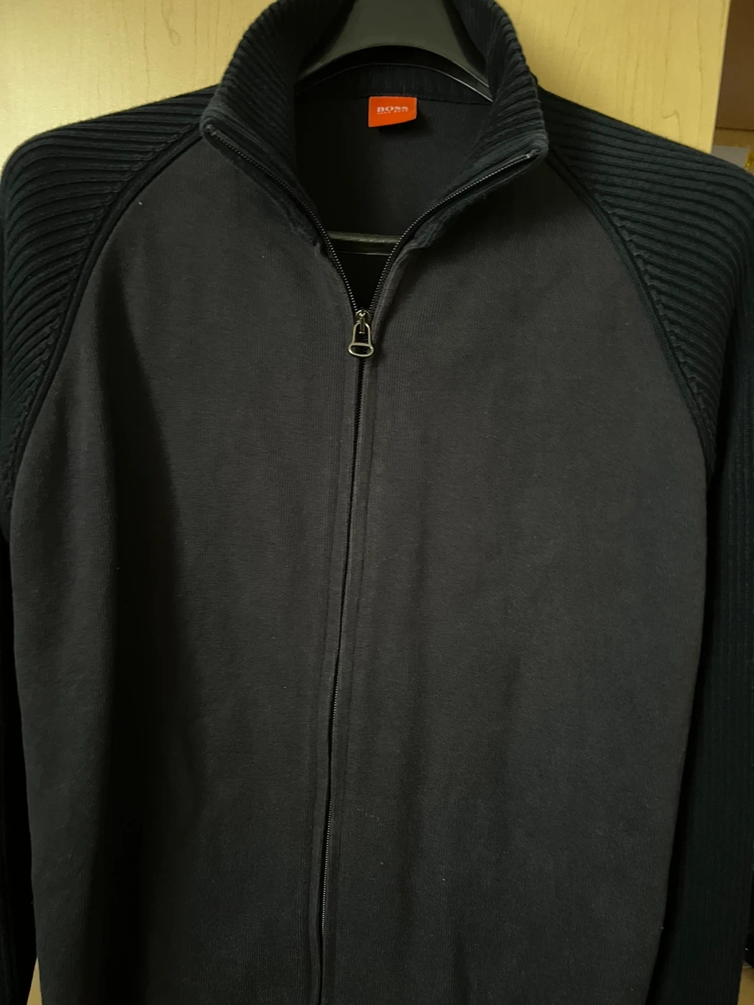 35Selling a black Hugo Boss zip-up sweater. It's in great condition and perfect for layering during the cooler months. The material is soft and comfortable, and the design is classic and versatile. Feel free to reach out if you have any questions!