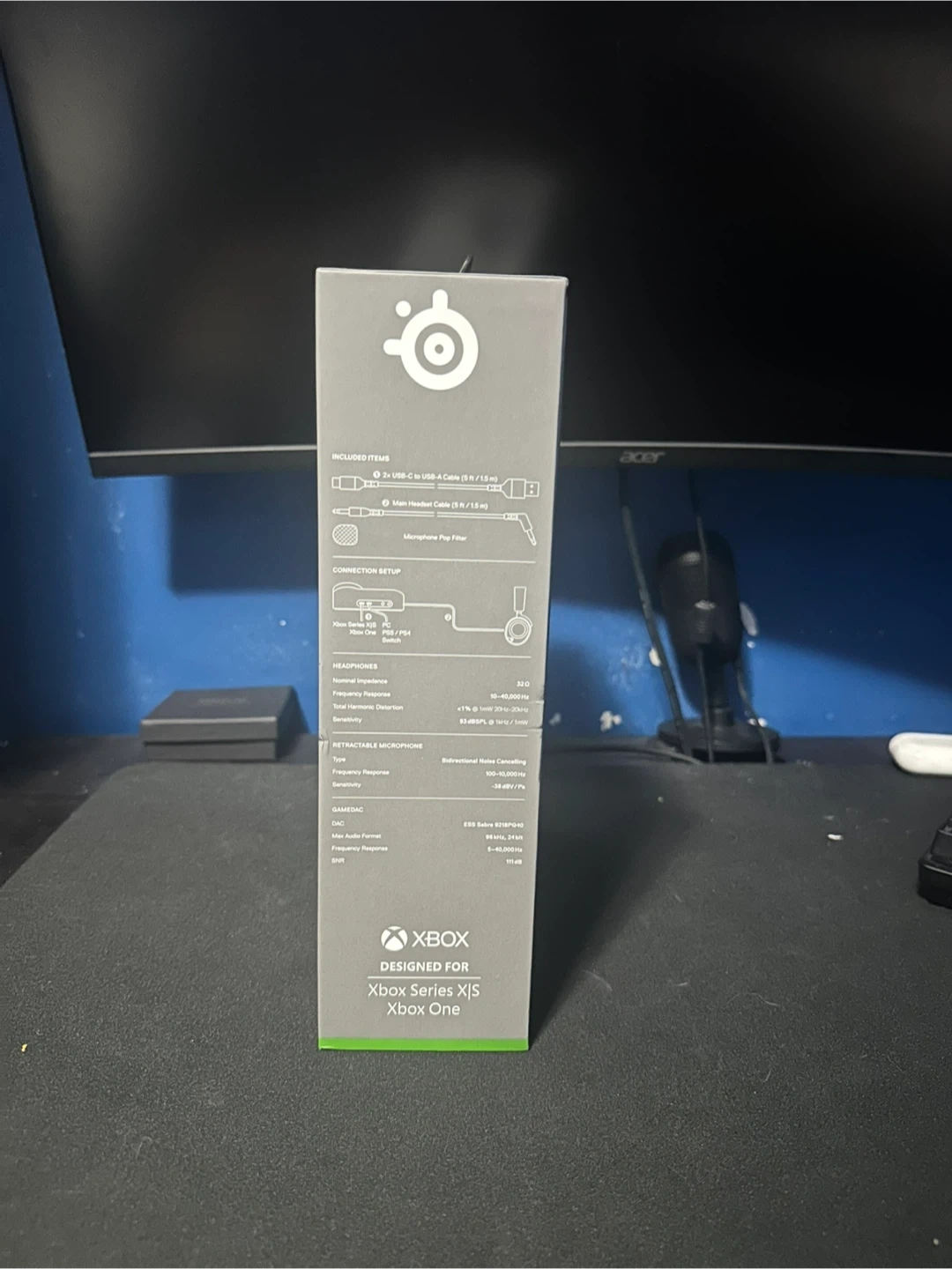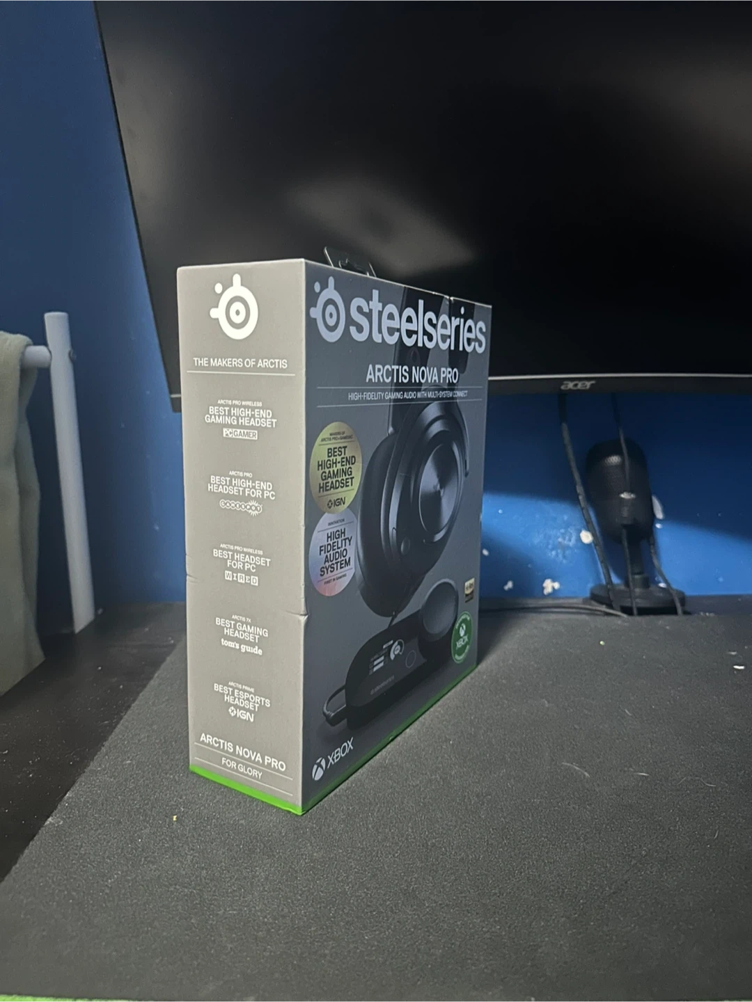 Selling a SteelSeries Arctis Nova Pro High-Fidelity Gaming Headset with Multi-System Connect designed for Xbox. It includes a USB-C to USB-A cable and a microphone pop filter. The headset also features retractable microphones and instructional noise cancelling. Perfect for gaming on Xbox Series X|S, Xbox One, and PC