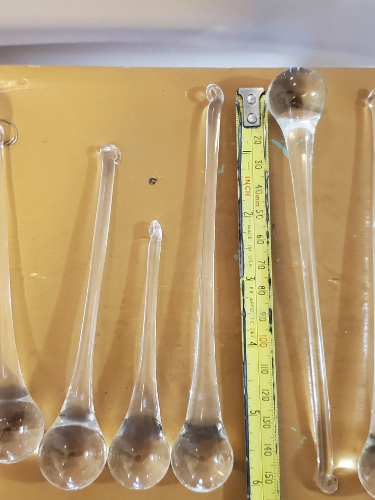 Selling a set of glass chandelier crystals. They vary in size, as you can see from the photos. Perfect for replacing broken crystals or adding some sparkle to your decor!