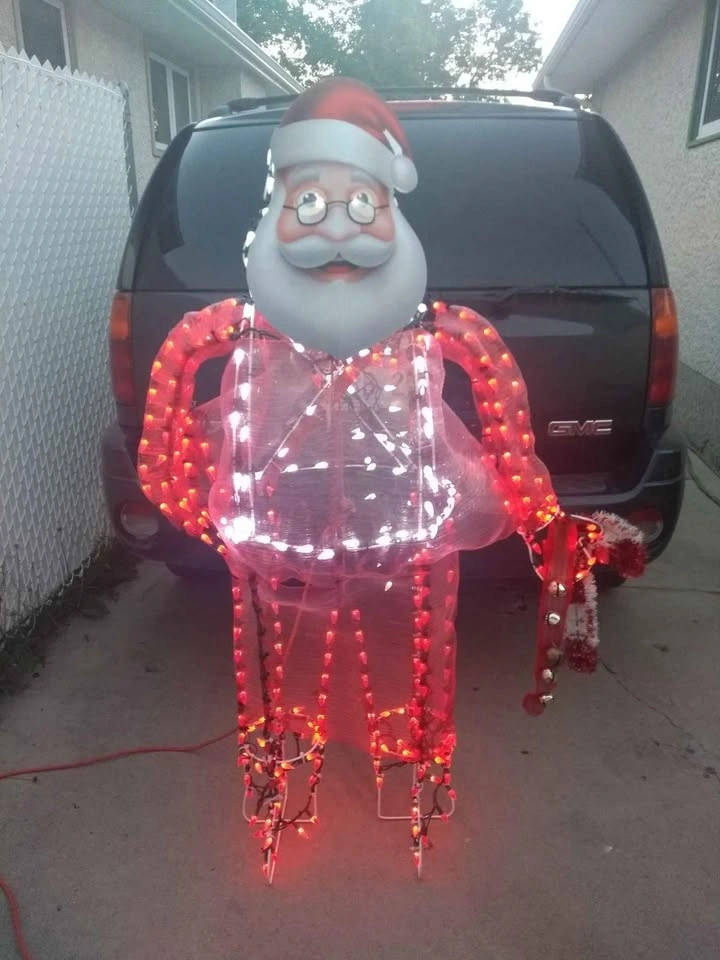Large outdoor Santa & Sleigh. Heavy duty metal frames. Stripped, painted & re strung led lights. Would like to sell as a set ($400) if not ($250) for your choice