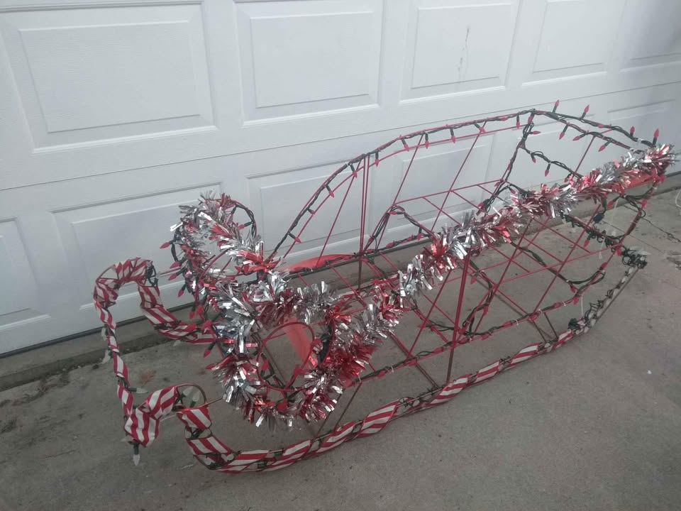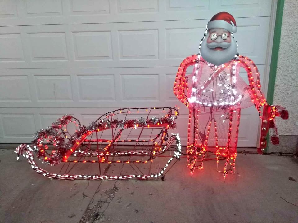 Large outdoor Santa & Sleigh. Heavy duty metal frames. Stripped, painted & re strung led lights. Would like to sell as a set ($400) if not ($250) for your choice