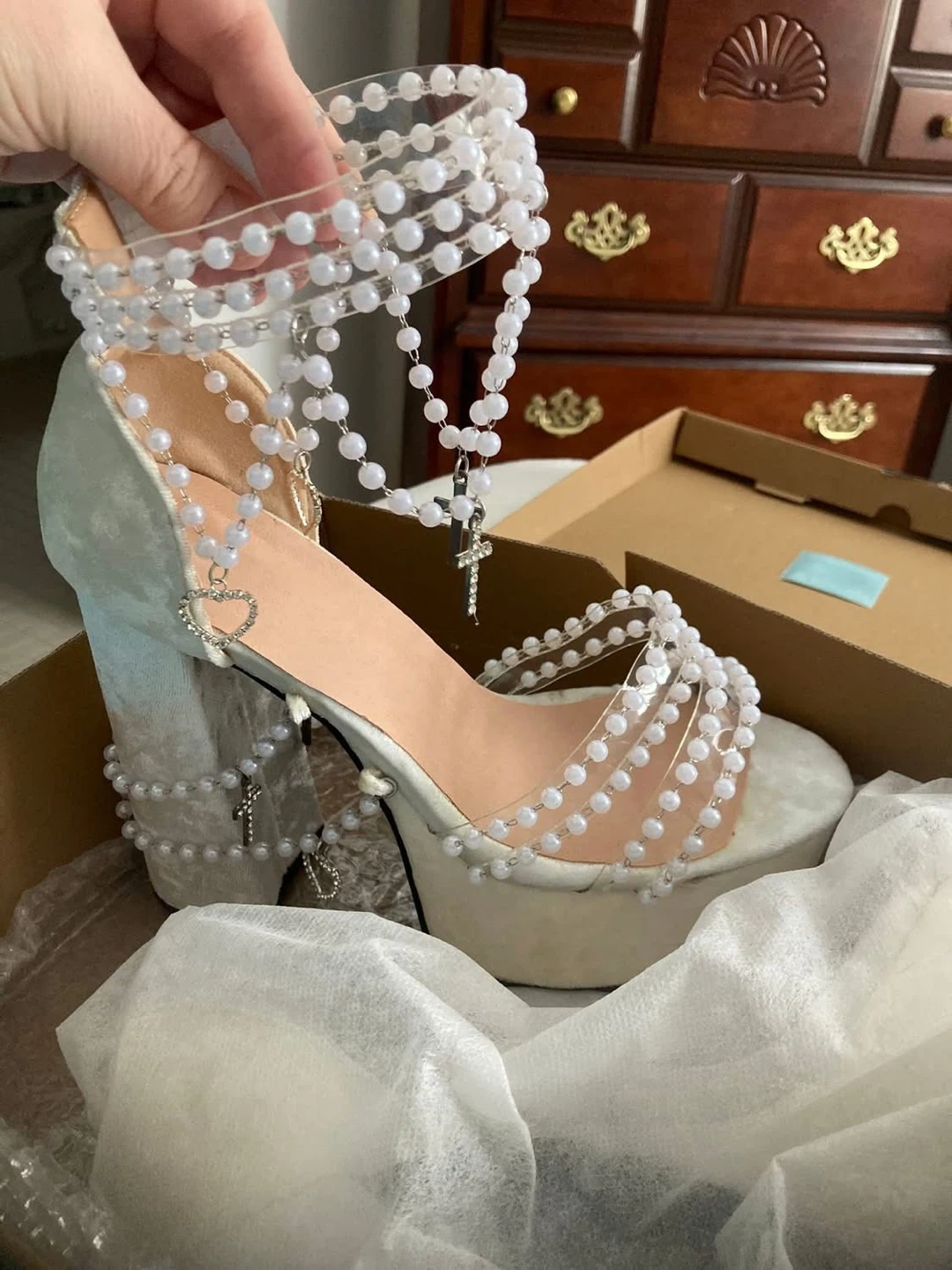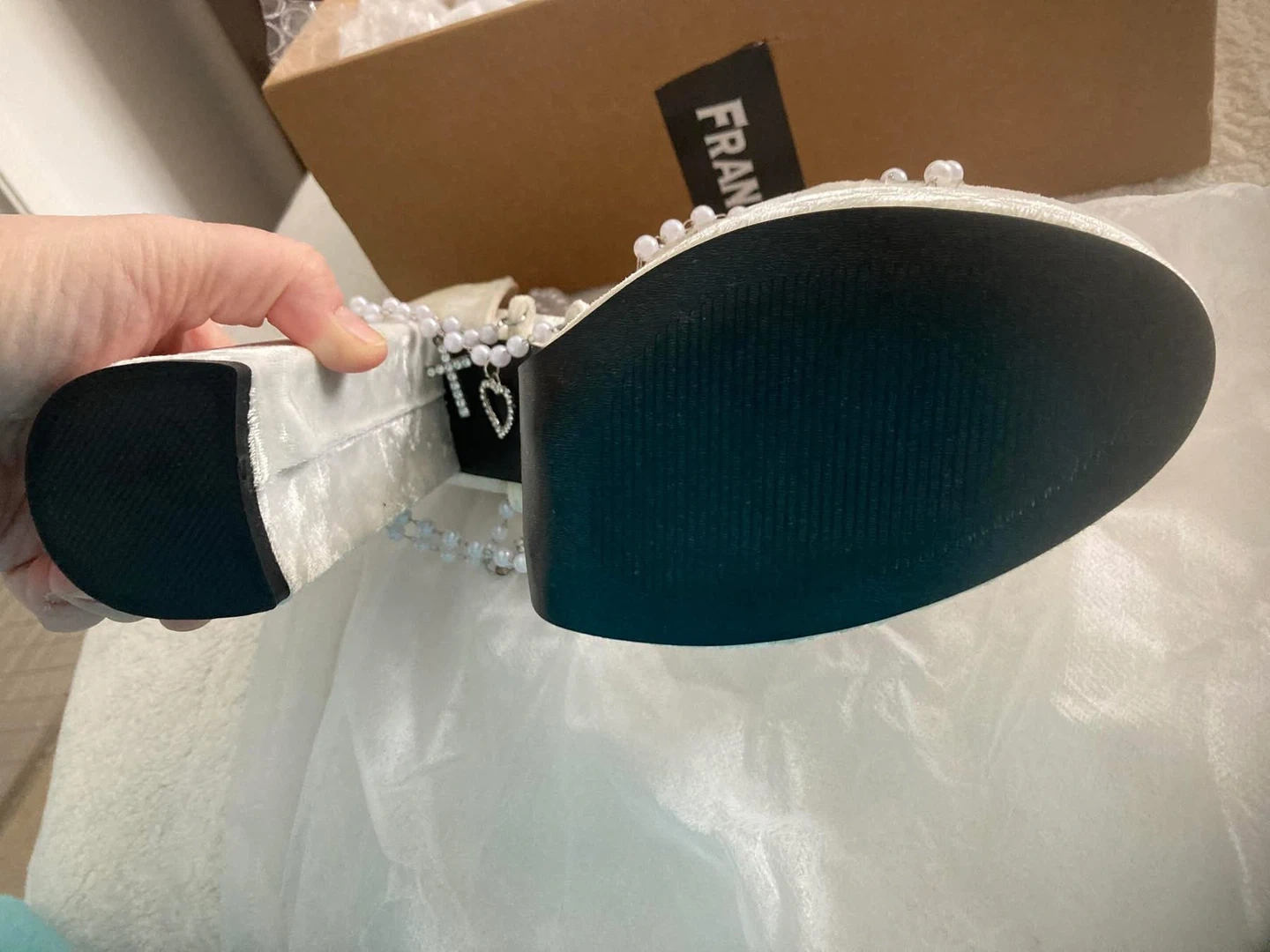These Frankie Hsu heels are a size 8 and feature a platform and pearl detailing. They are in new condition and come in the original box. They are looking for a new home where they will be loved and appreciated.
