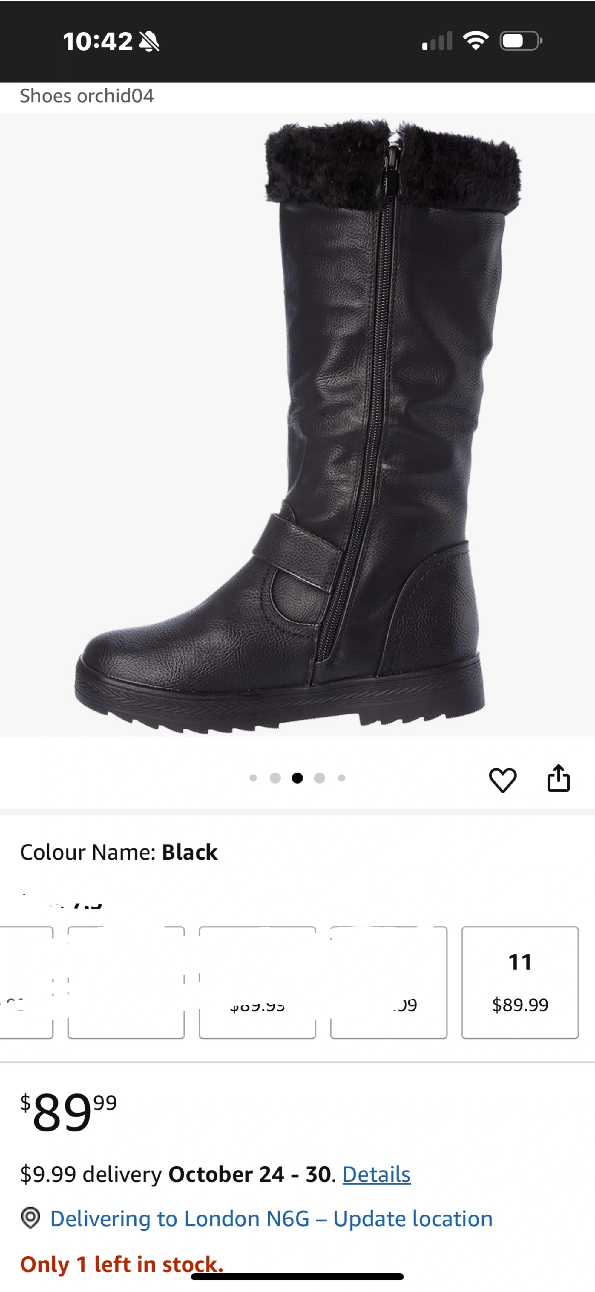 Buy & SellBlack Winter Boots - Size 11Black Winter Boots - Size 11$70Cozy black winter boots in size 11. They feature a faux fur trim and a decorative buckle. Originally priced at $89.99ConditionNewWHERE TO MEETKing streetView MapSELLERKhadijaE London614 reviews0 chats·1 favorites·30 viewsSEND CHAT TO SELLERHi Khadija! I’m interested in your listing.Hi Khadija! I’m interested in your listing.Get the Karrot app to chatSign In to chat
