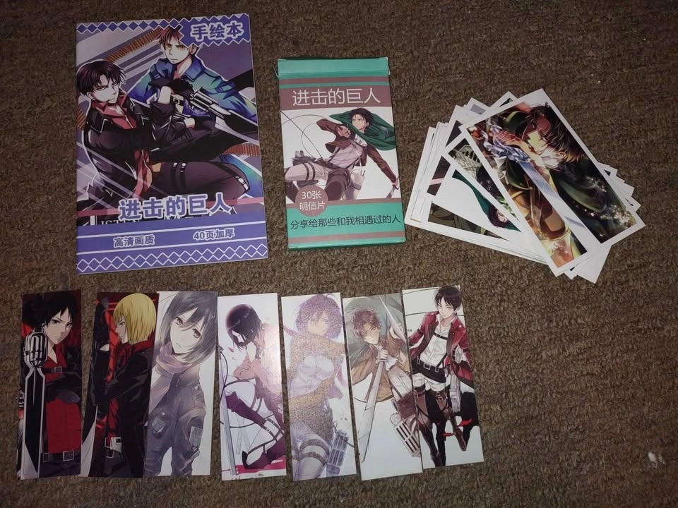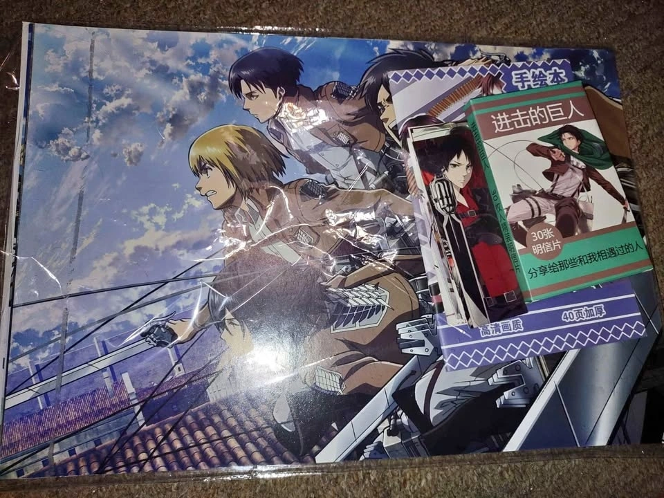 Buy & SellAttack On Titans Anime BundleAttack On Titans Anime Bundle$60Comes with: 8 medium Anime posters, 30 Anime postcards, 1 small sketch booklet of Anime, and 7 front and back Anime book marks.WHERE TO MEETCheck LocationView MapSELLERBailieE Ward100 reviews0 chats·0 favorites·2 viewsSEND CHAT TO SELLERHi Bailie! I’m interested in your listing.Hi Bailie! I’m interested in your listing.Get the Karrot app to chatSign In to chat