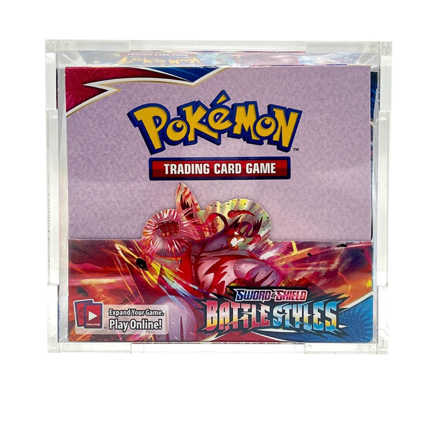Clear acrylic display case for your Pokemon TCG booster box. Features easy press-fit assembly with no glue required. Protects and showcases your valuable cards!