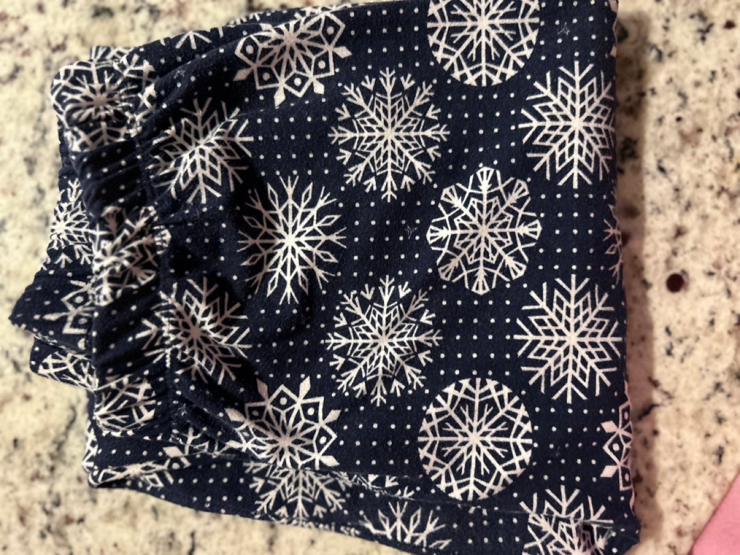 Navy blue sweetlegs leggings with a white snowflake pattern. Buttery Soft and stretchy fabric. Machine washable. Perfect for winter.