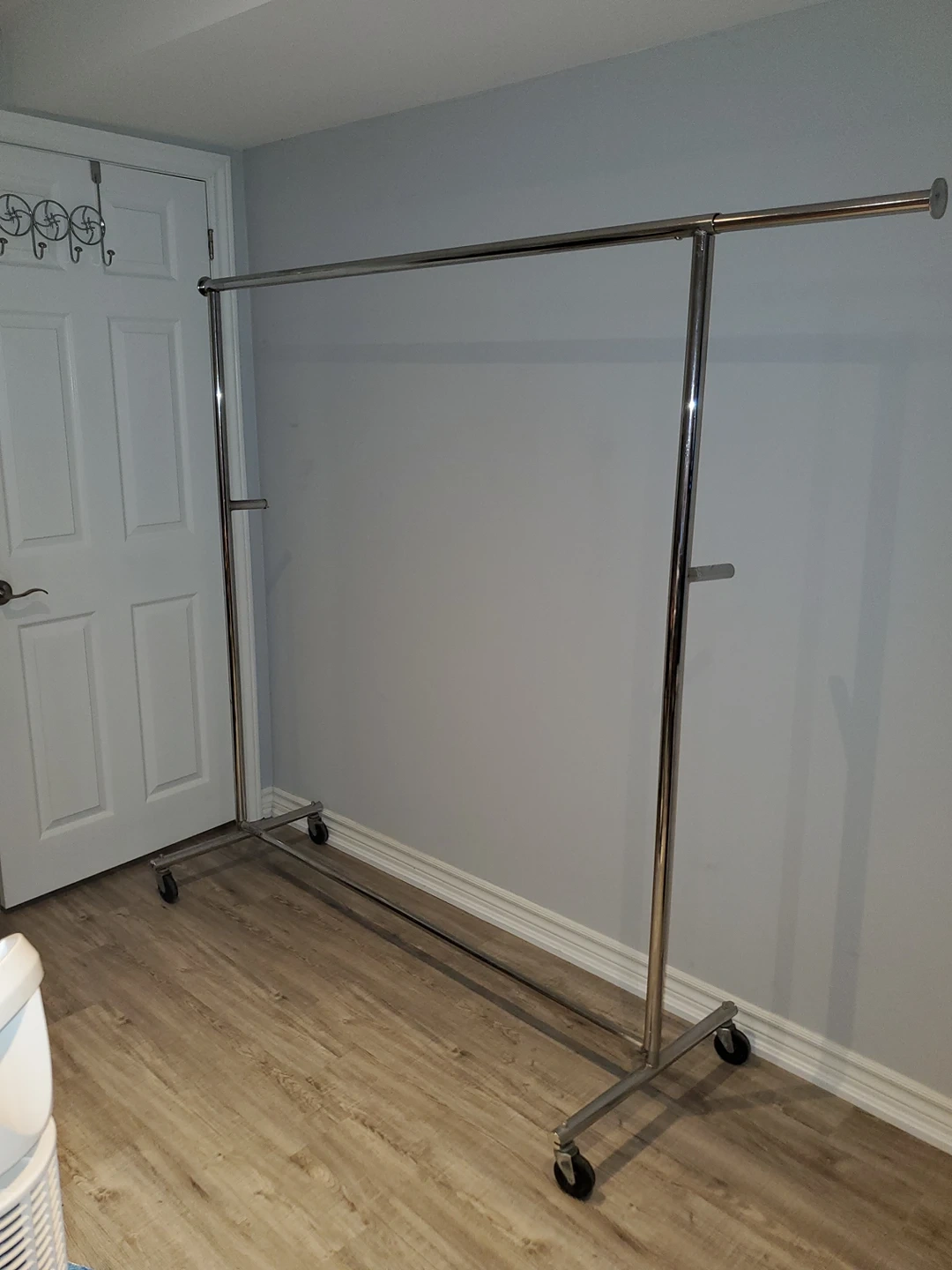 Sturdy metallic clothes rack on wheels