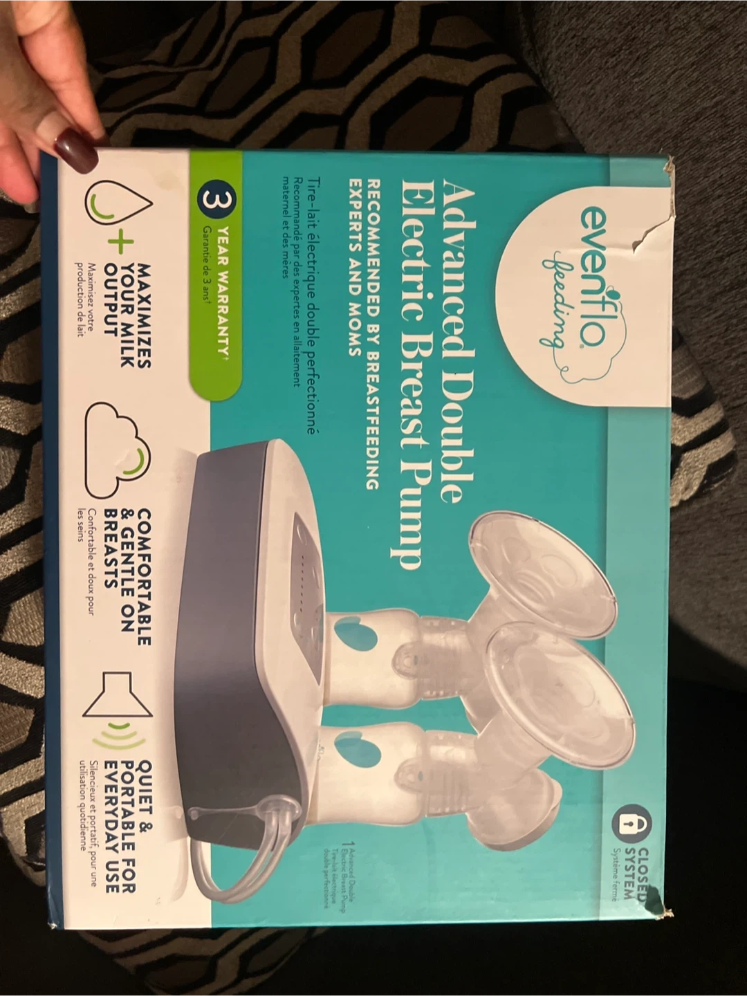 Selling an Evenflo Advanced Double Electric Breast Pump! It's recommended by breastfeeding experts and moms. It's designed to be comfortable and gentle on breasts, while maximizing milk output. Plus, it's quiet and portable for everyday use.