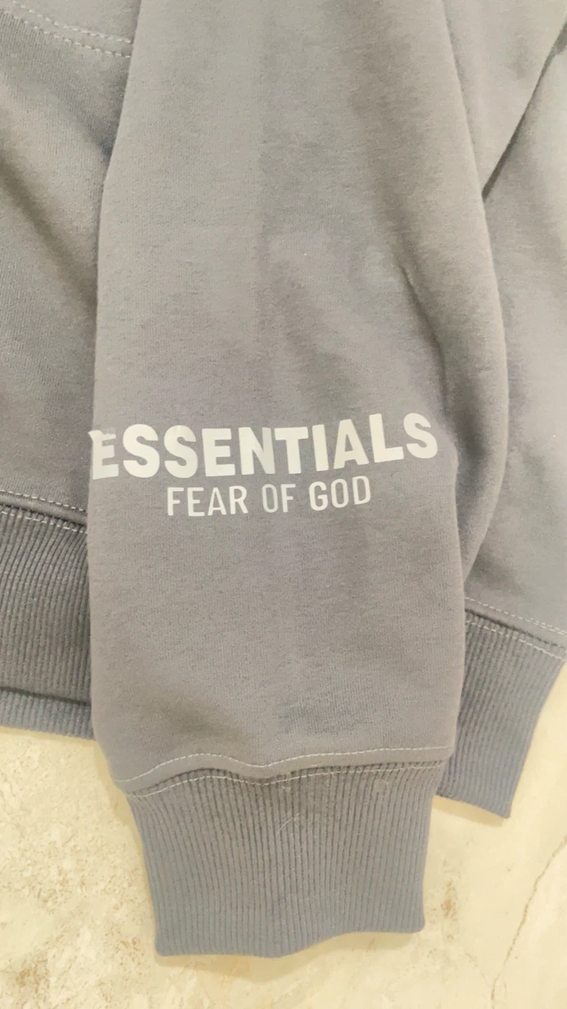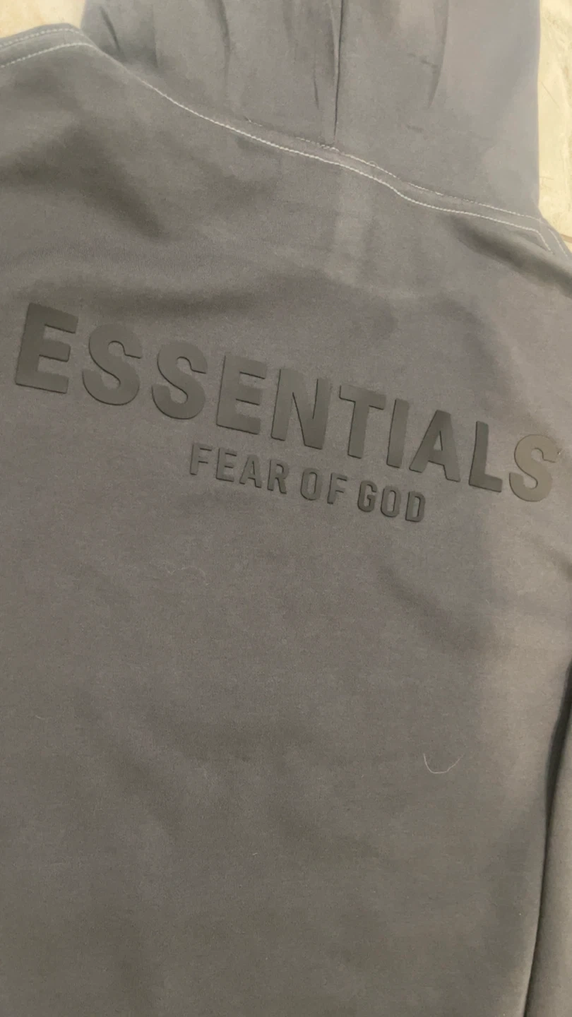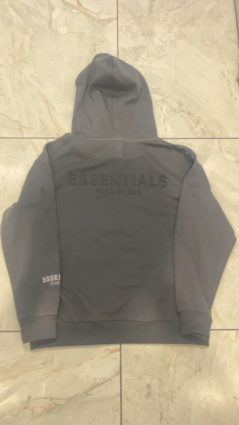 25Selling an Essentials Fear of God hoodie in a lovely grey colour! It's in great condition and ready for a new home. The hoodie features the Essentials logo on the sleeve and back. Perfect for staying comfy and stylish!