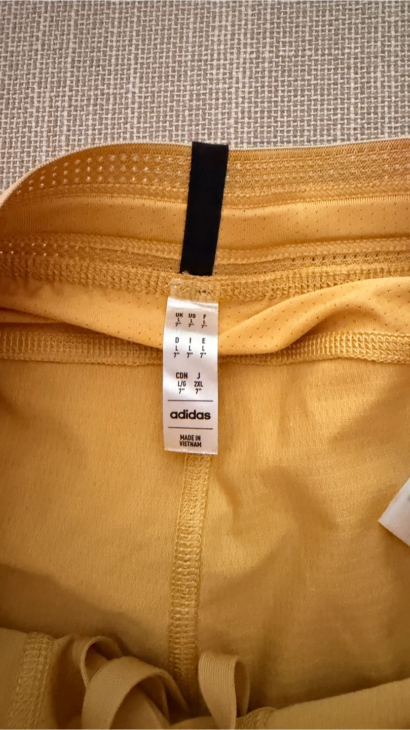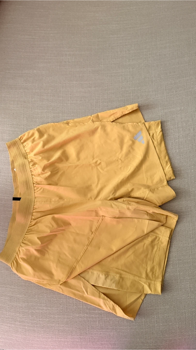 Selling a pair of Adidas running shorts in a sunny yellow colour! They're in great shape and ready for your next run. Perfect for staying cool and comfortable while you're out there
