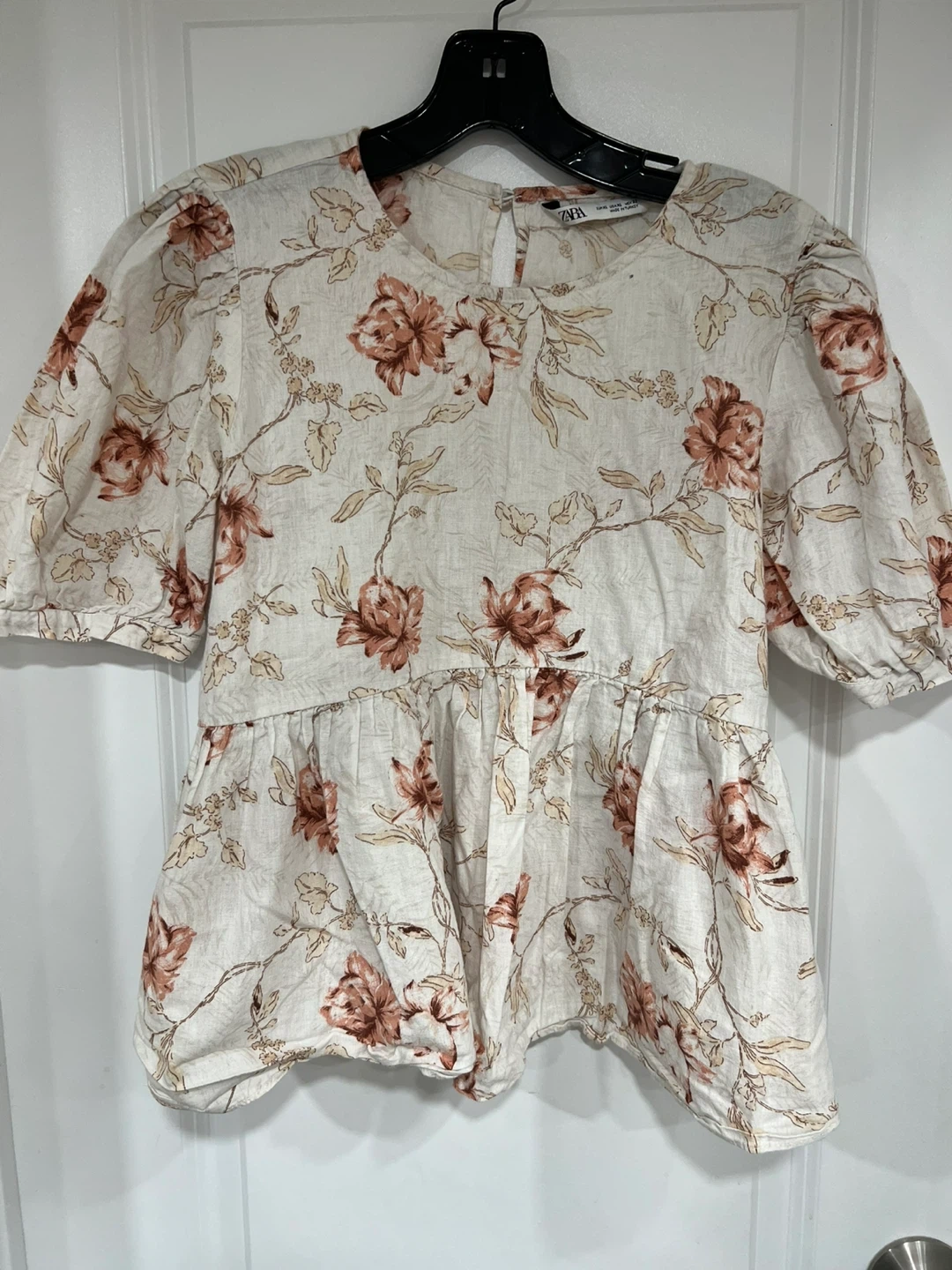 88This is a Zara floral print top in size XL. It's a beautiful top with a light and airy feel, perfect for warmer weather. The floral pattern is really eye-catching and the fit is comfortable. It's in great condition and ready for a new home!