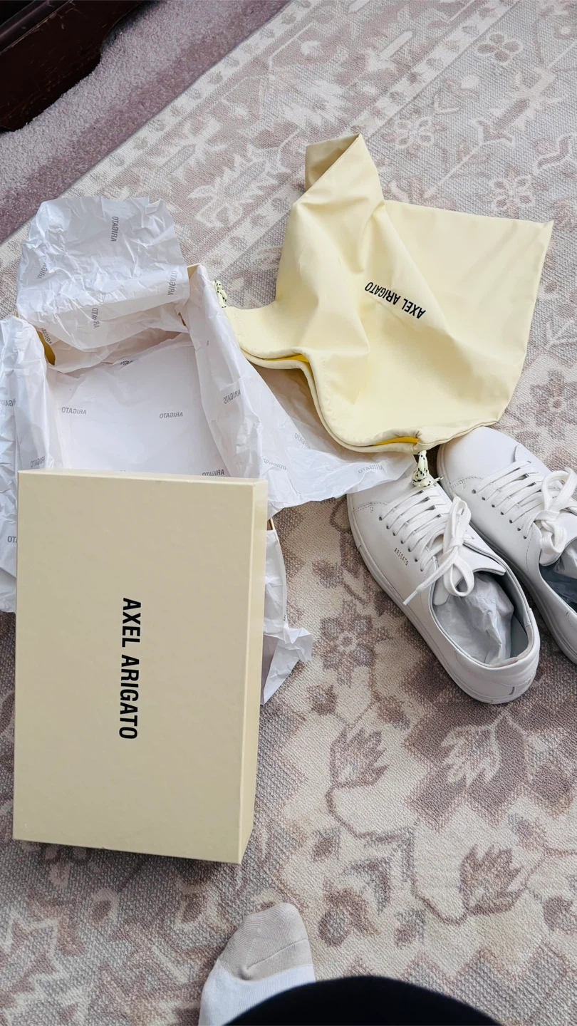 Selling a pair of Axel Arigato Clean 90 sneakers in white! They're in great condition and come with the original box and dust bag. A stylish and comfortable addition to any wardrobe!