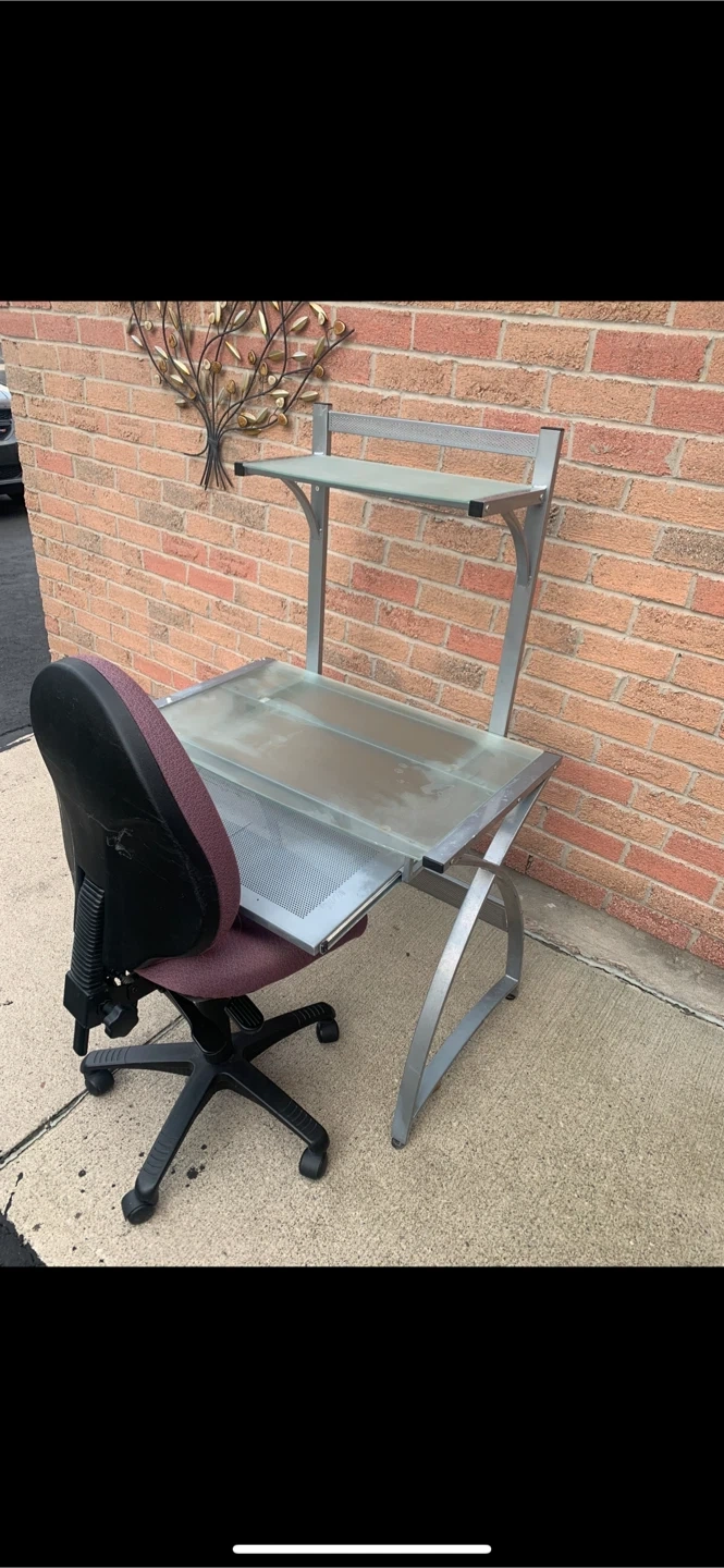 Computer Desk with Sliding Keyboard and Cushion Chair