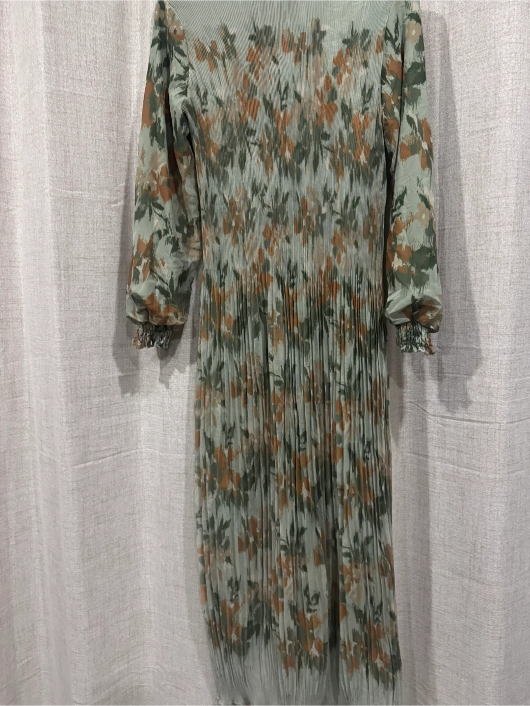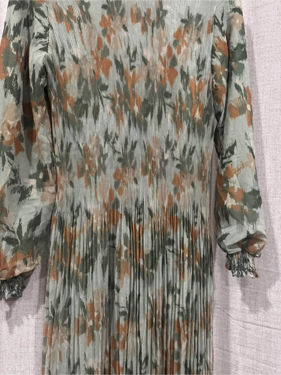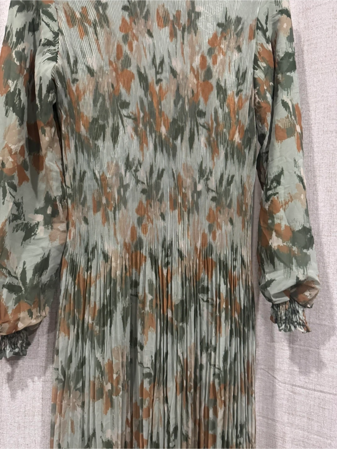 12This is a lovely pleated midi dress with a pretty floral pattern. It's perfect for a casual day out or a special occasion. It's in great condition and ready for a new home