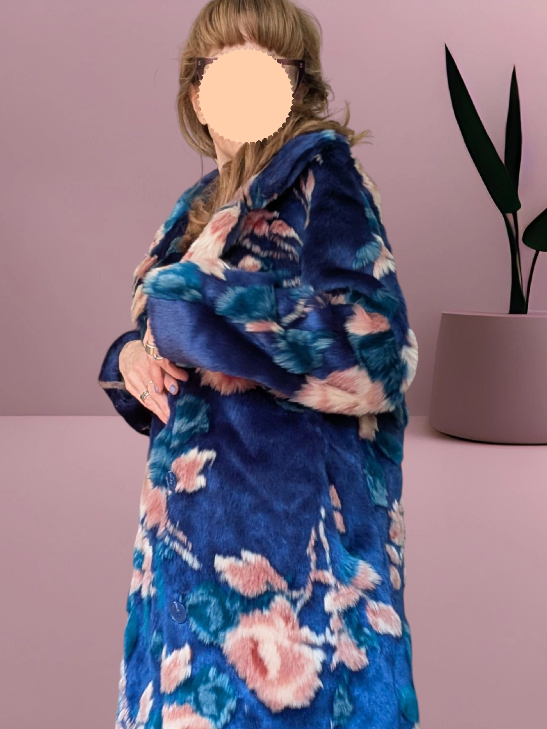 Guess Faux Fur Coat – Bold Floral Print – Size XS