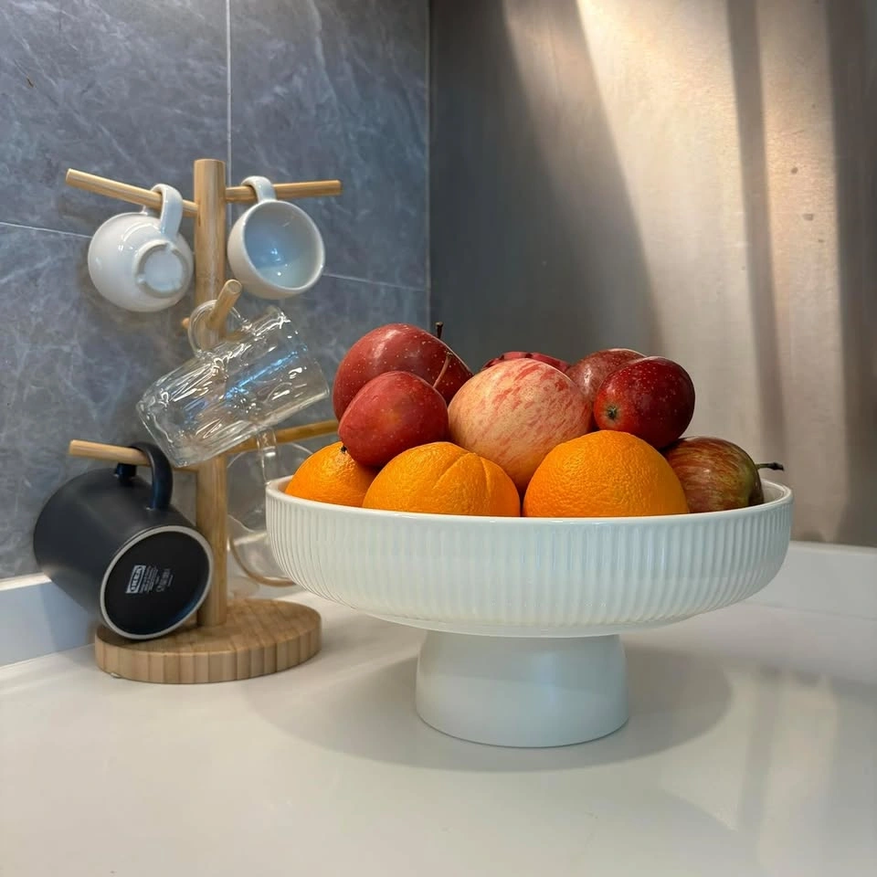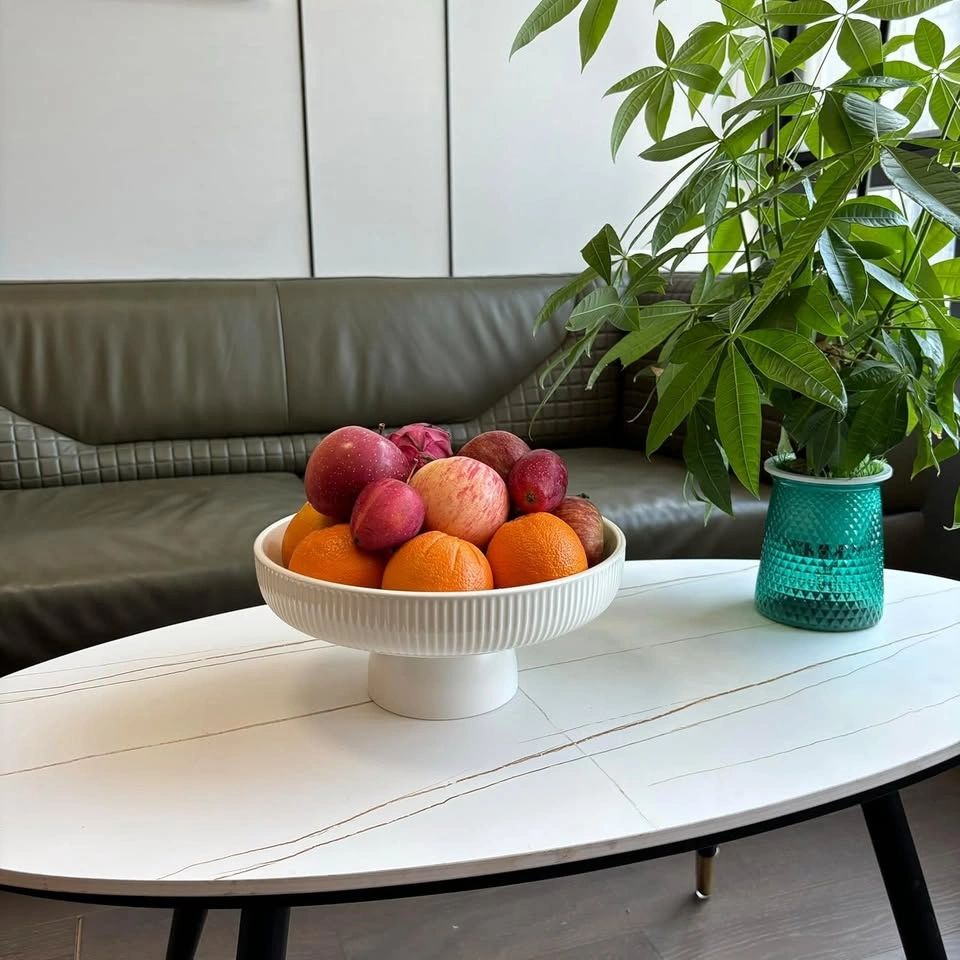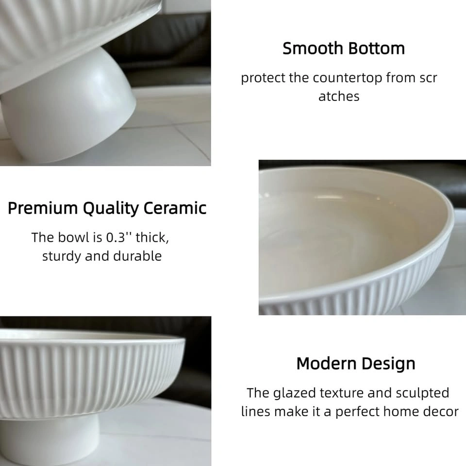 Ceramic Fruit Bowl, 11" Decorative Bowl, Large Fruit Bowl for Kitchen Counter, Pedestal Bowl, Kitchen Counter Décor, Bread Candy Snacks Organizer, White (Extra Large (11'' Wide))