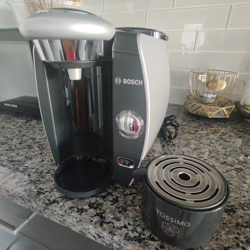 I'm selling a Bosch Tassimo coffee maker. It's in great shape and ready to make delicious coffee! It is a single-serve machine that uses Tassimo pods.