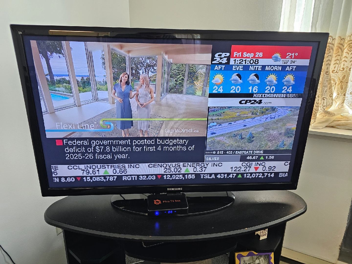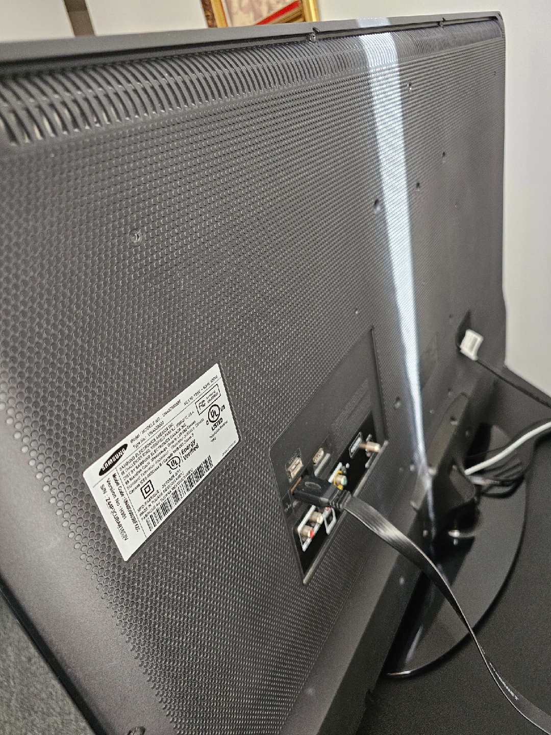 Samsung I believe it's 43 inches. this is not a smart TV. comes with converter