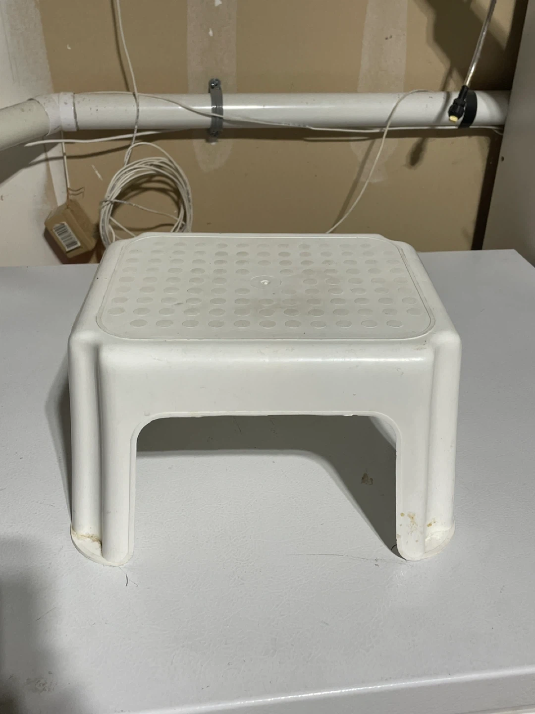 33Selling a handy white plastic step stool. It's perfect for reaching those high shelves or giving the little ones a boost! It's in good used condition and ready for a new home
