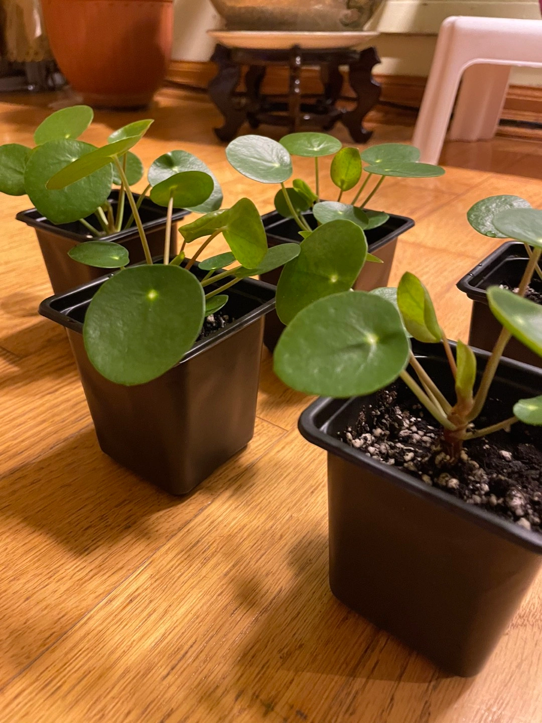 Selling tiny Chinese money plants, also known as pilea peperomioides or pancake plants, for $3 each (or two for $5). Only accepting cash. Pick-up only (no Sundays).
