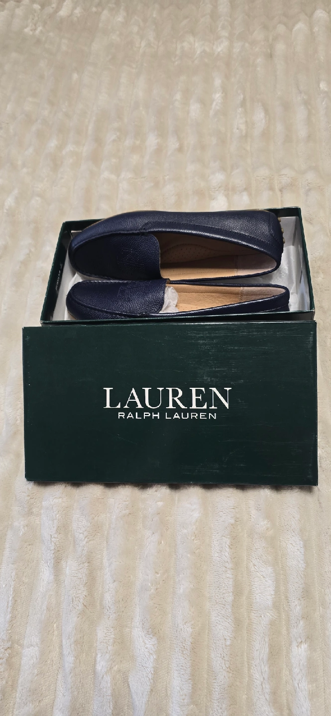 Brand new, never worn. Selling a pair of Lauren Ralph Lauren blue leather loafers. They come with the original box. Great for everyday wear!