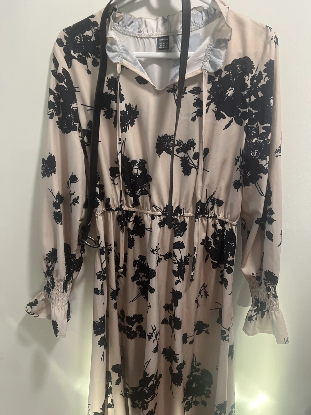 70Selling a dress with a lovely floral print. It features long sleeves and a comfortable fit. Perfect for adding a touch of elegance to your wardrobe! Fall and works like peplum too!