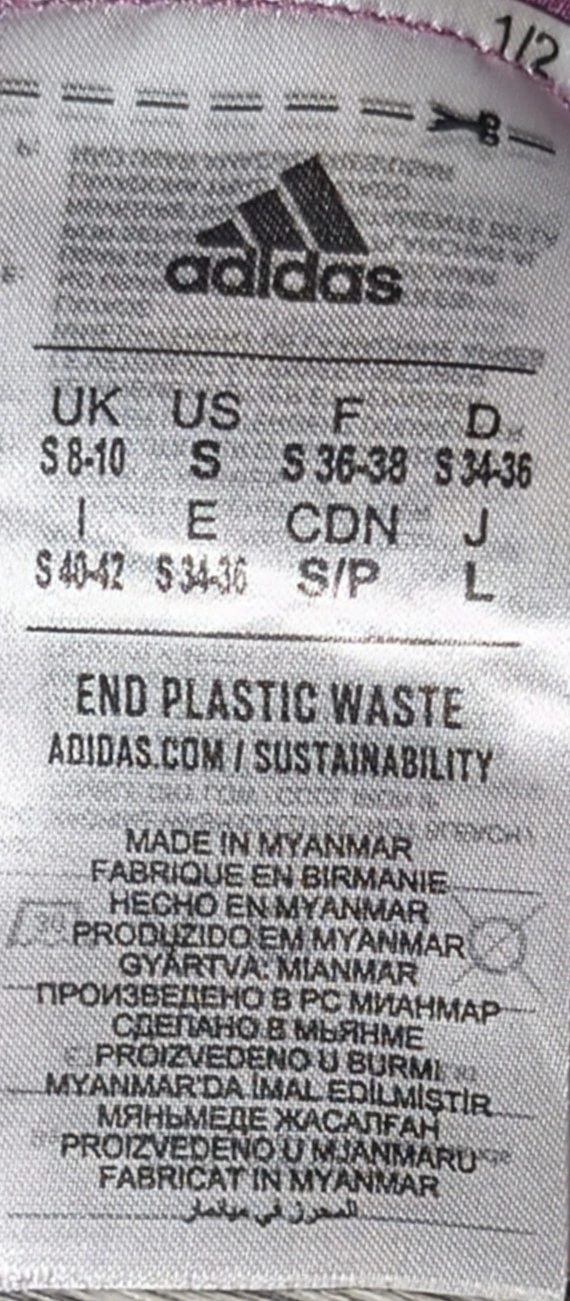 Selling an Adidas Techfit training top in size S. It has a unique zebra-like pattern with shades of pink and purple. The top features AEROREADY technology. Perfect for your next workout!