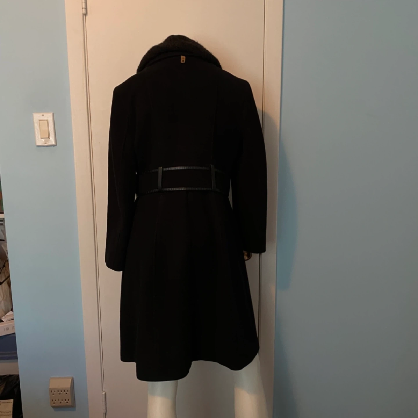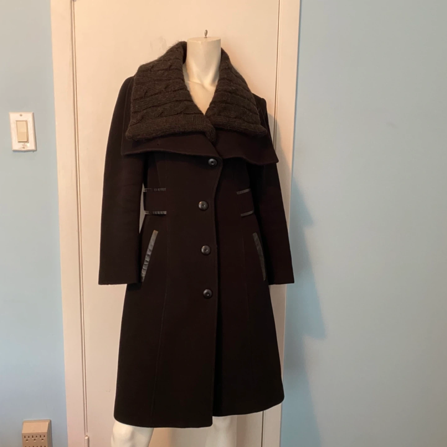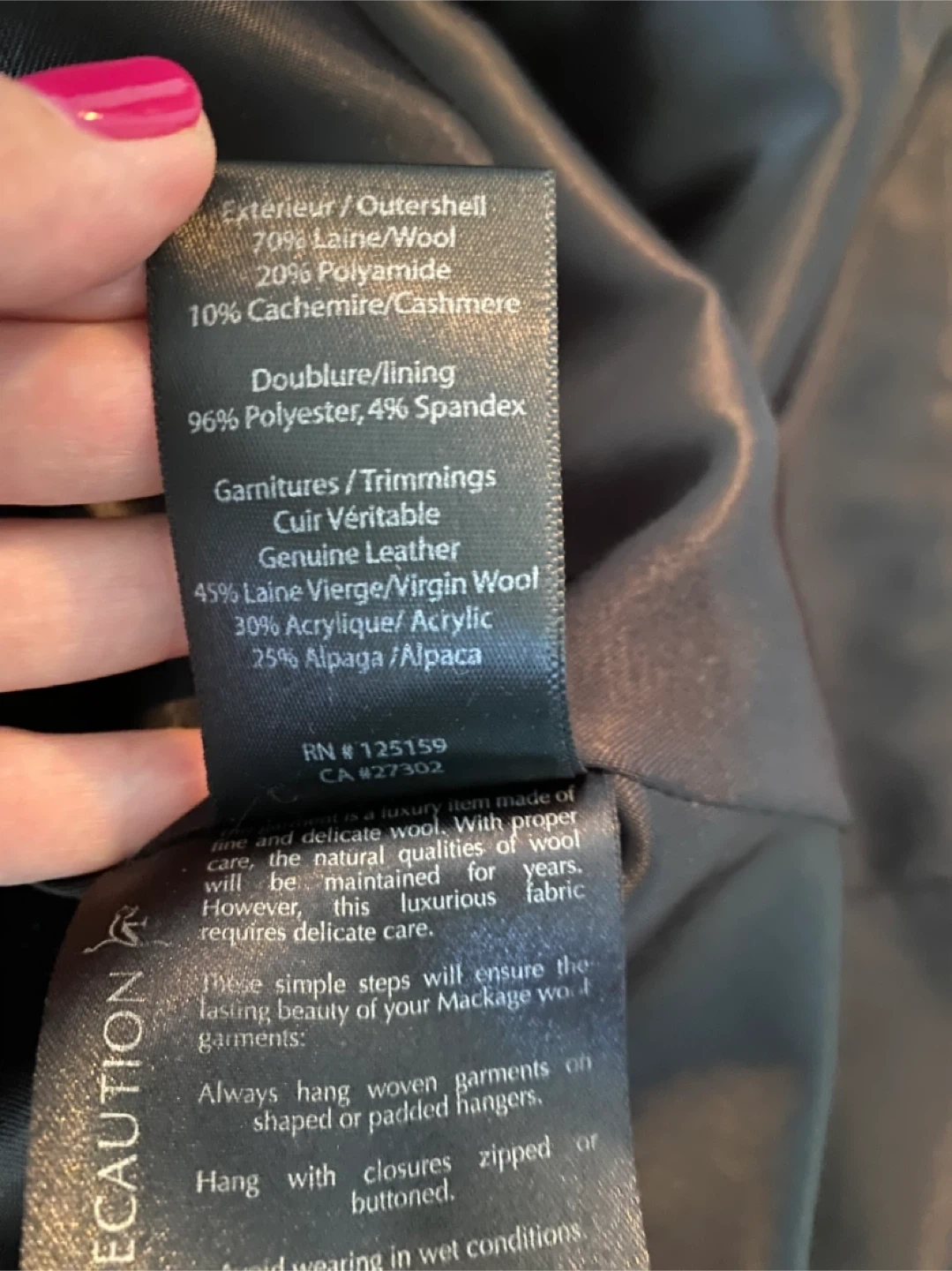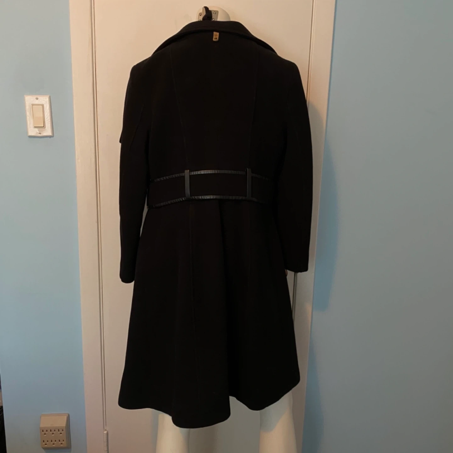 76This luxurious Mackage coat is crafted from a soft wool-cashmere blend and designed with a timeless A-line silhouette. The coat features a removable scarf and versatile waterfall collar that can be styled in multiple ways—up, folded, or draped—for 6 different looks. Details you’ll love: - Premium wool-cashmere blend for warmth and elegance - Leather trim detailing on the belt, pockets, and loops - Attached belt to cinch the waist and flatter your figure - Beautiful leather welted pockets for a sleek finish - Removable scarf for added versatility 📏 Sizing Note: The tag reads Large, but the coat was professionally tailored at Holt Renfrew to fit more like a Medium. Please refer to Mackage’s official sizing dimensions (screenshot provided in listing) to ensure the best fit. This is a show-stopping coat that combines sophistication, craftsmanship, and functionality—perfect for both everyday wear and special occasions. 💫 Excellent condition
