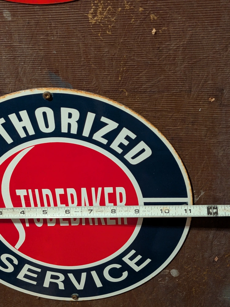 60Selling a vintage Studebaker Authorized Service sign. It's a great piece for any car enthusiast or collector! It has a classic design with the Studebaker logo and bold lettering.