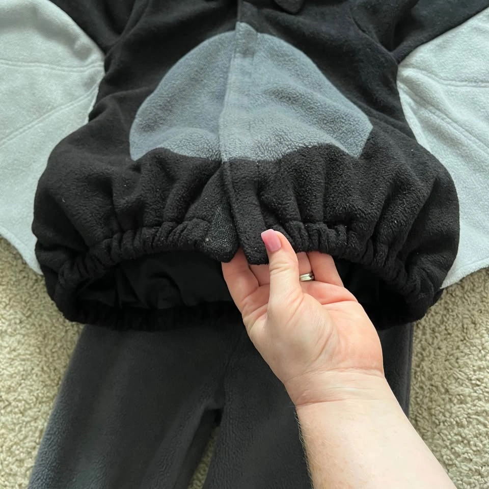 This costume is in very good used condition and just so adorable, I loved how it looked on my son! The velcro closure is in great condition and the boot straps on the pants are clean and stretchy. The lower tummy has some filling for a fuller look. Perfect for dress-up, or chilly Halloween nights for trick or treating.