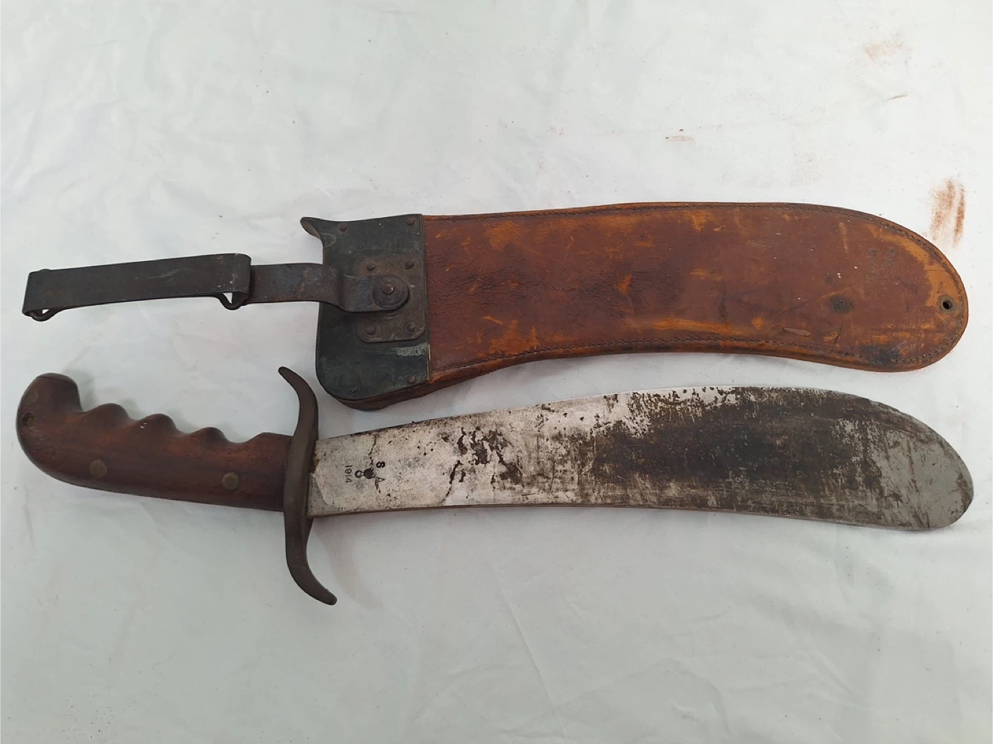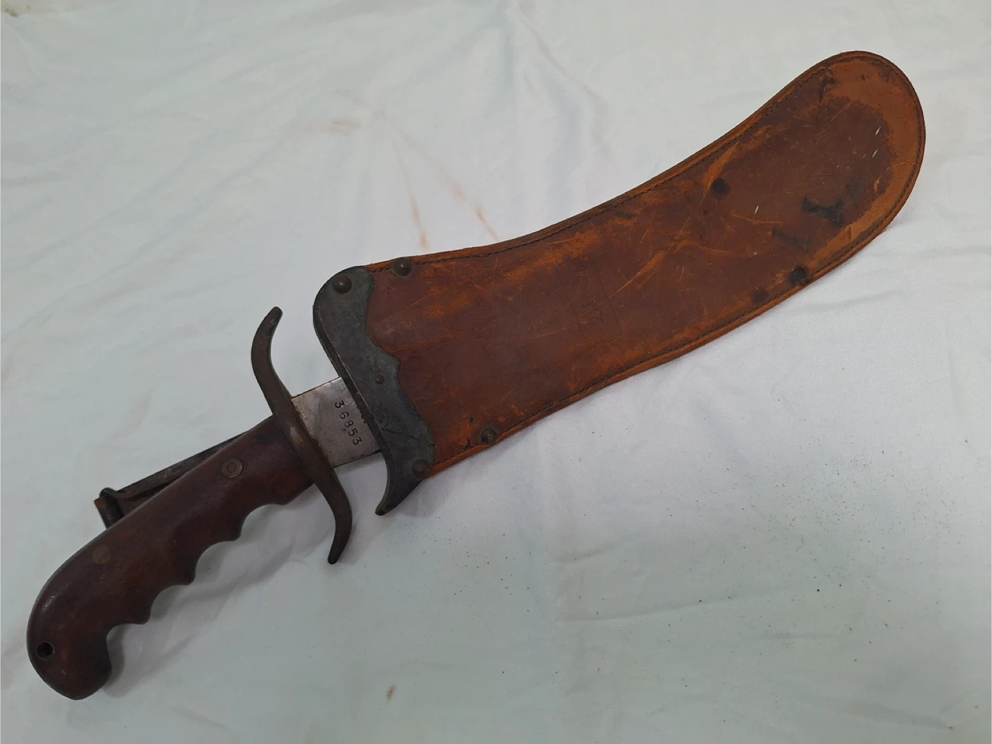 Cuchillo de la segunda guerra mundial,con funda y número de serie de el año 1914.