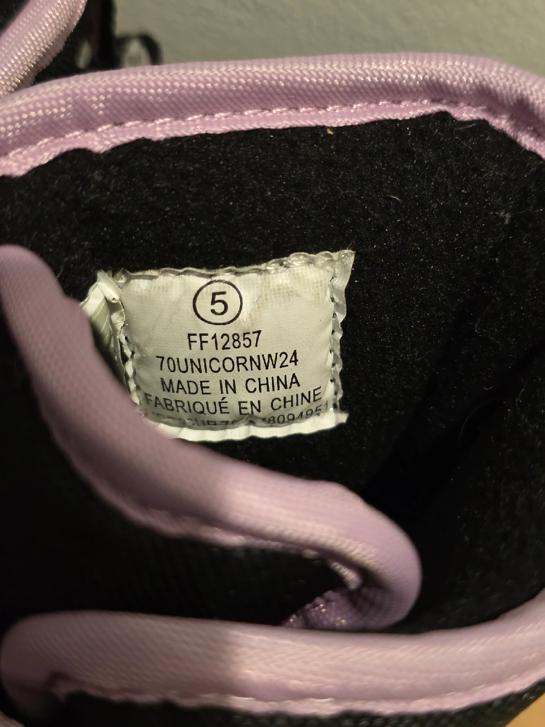 25These adorable winter boots are perfect for keeping your little one's feet warm and dry! They feature a cute unicorn design and are a size 5. The boots have a waterproof sole, making them great for snowy days. They're in excellent condition and ready for a new home!