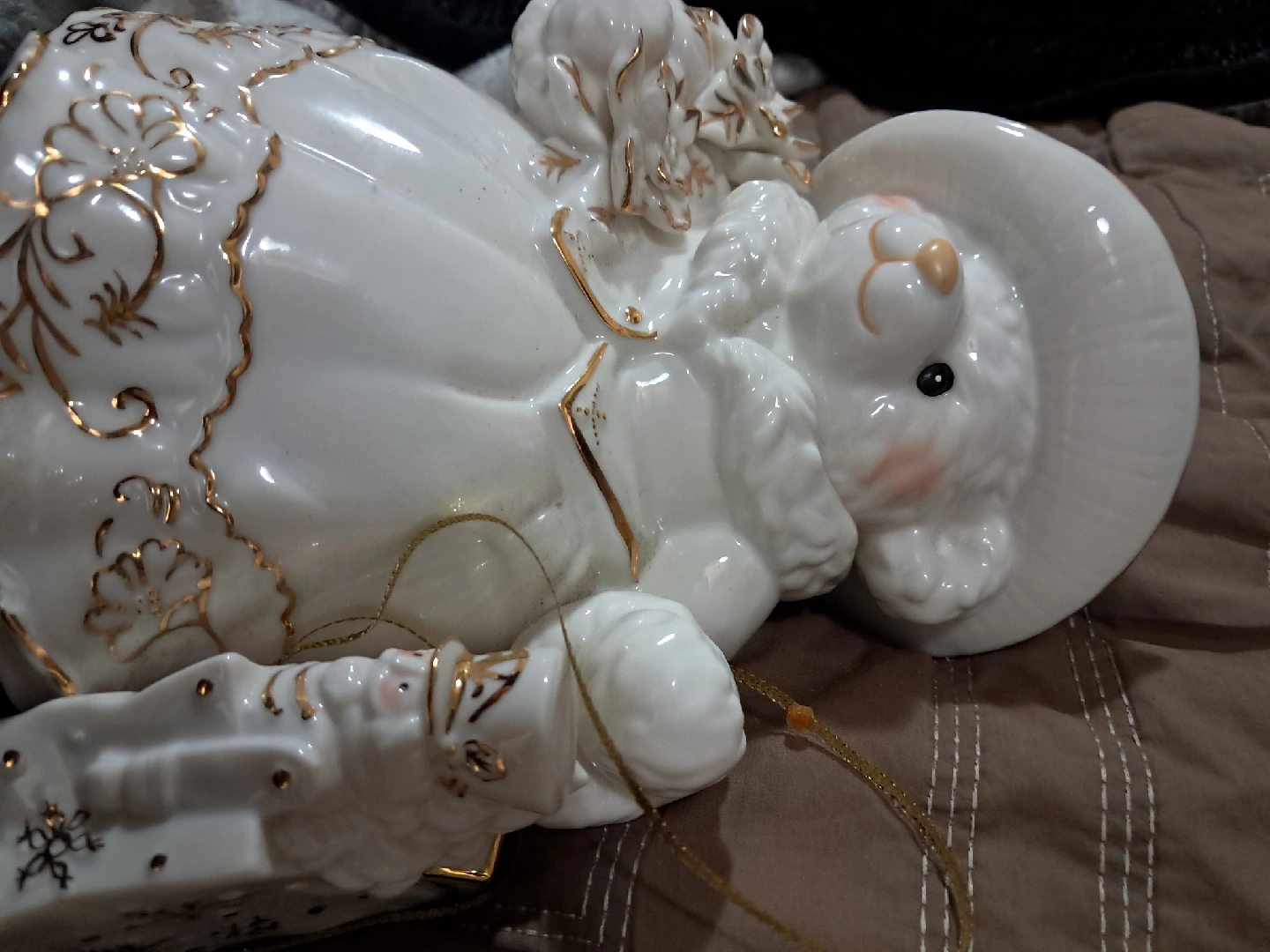 Vintage Mama bear porcelain Christmas statue. It's a bit dusty from storage. She's looking for a new loving home!