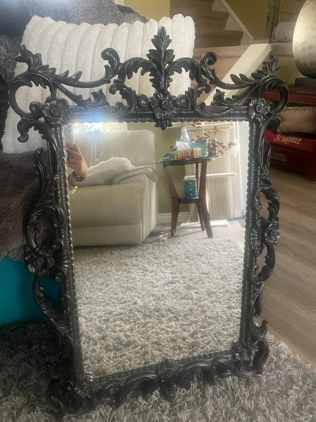 Selling a beautiful ornate mirror with a black frame! It's in great shape and would add a touch of elegance to any room