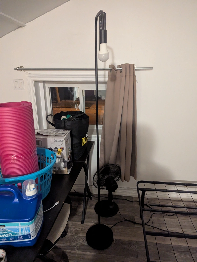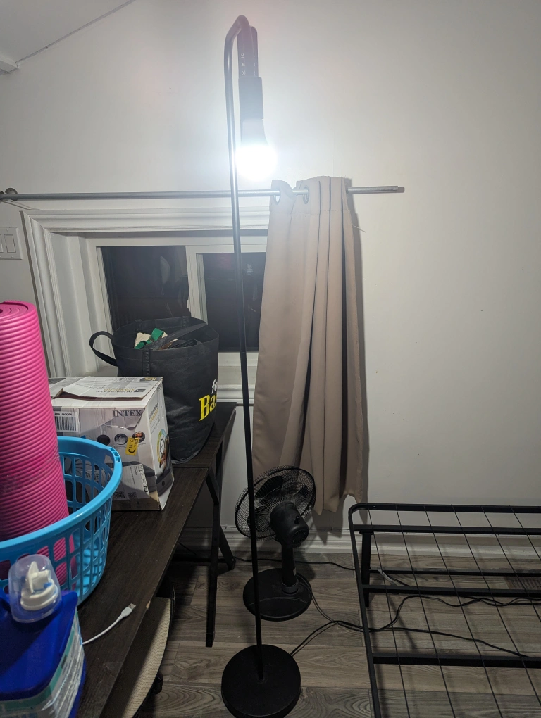 Selling a black floor lamp. It's in good condition and ready to brighten up your space!