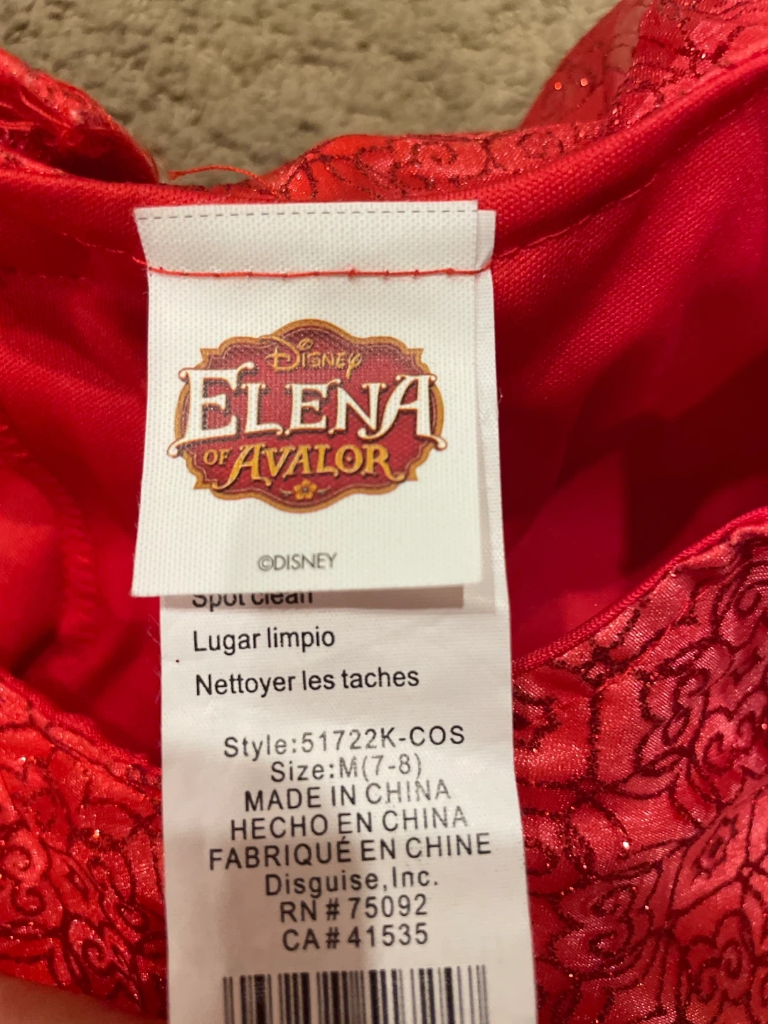 10Selling a Disney Elena of Avalor costume in size M (7-8)! It's in great condition and ready for dress-up or Halloween. The style number is 51722K-COS. Spot clean only