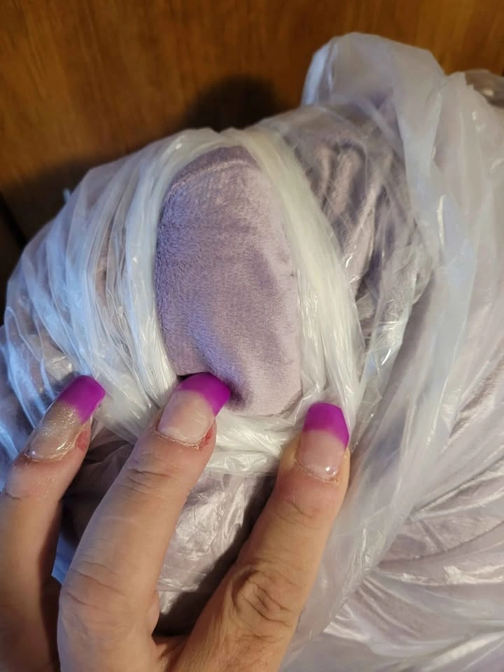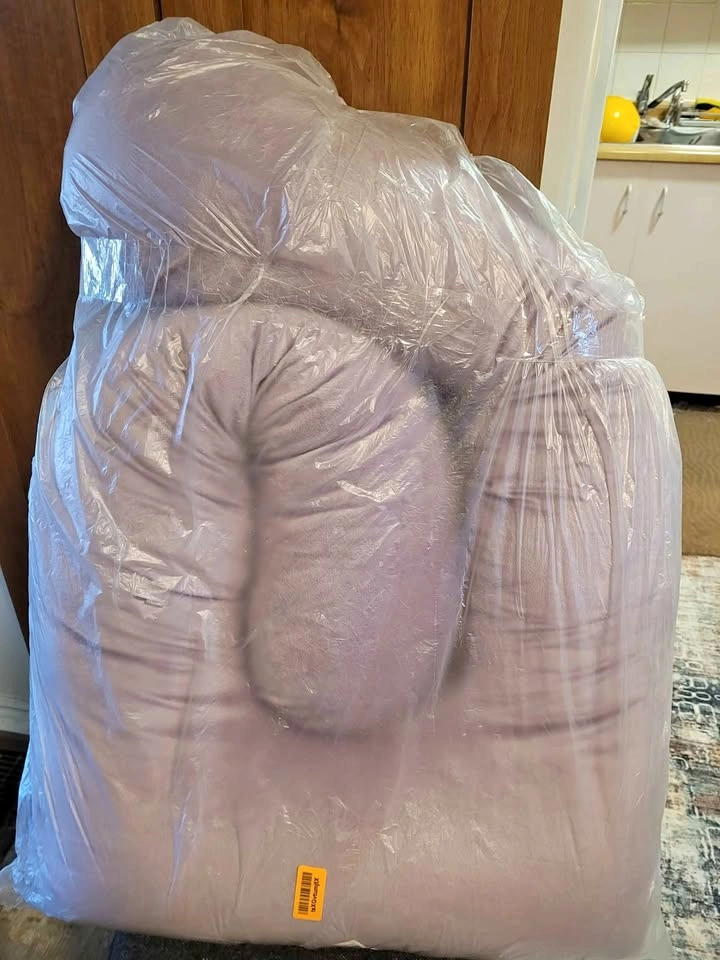 Purchased and then not used, U shaped pregnancy pillow with velvet cover in light purple. Very soft and comfortable.