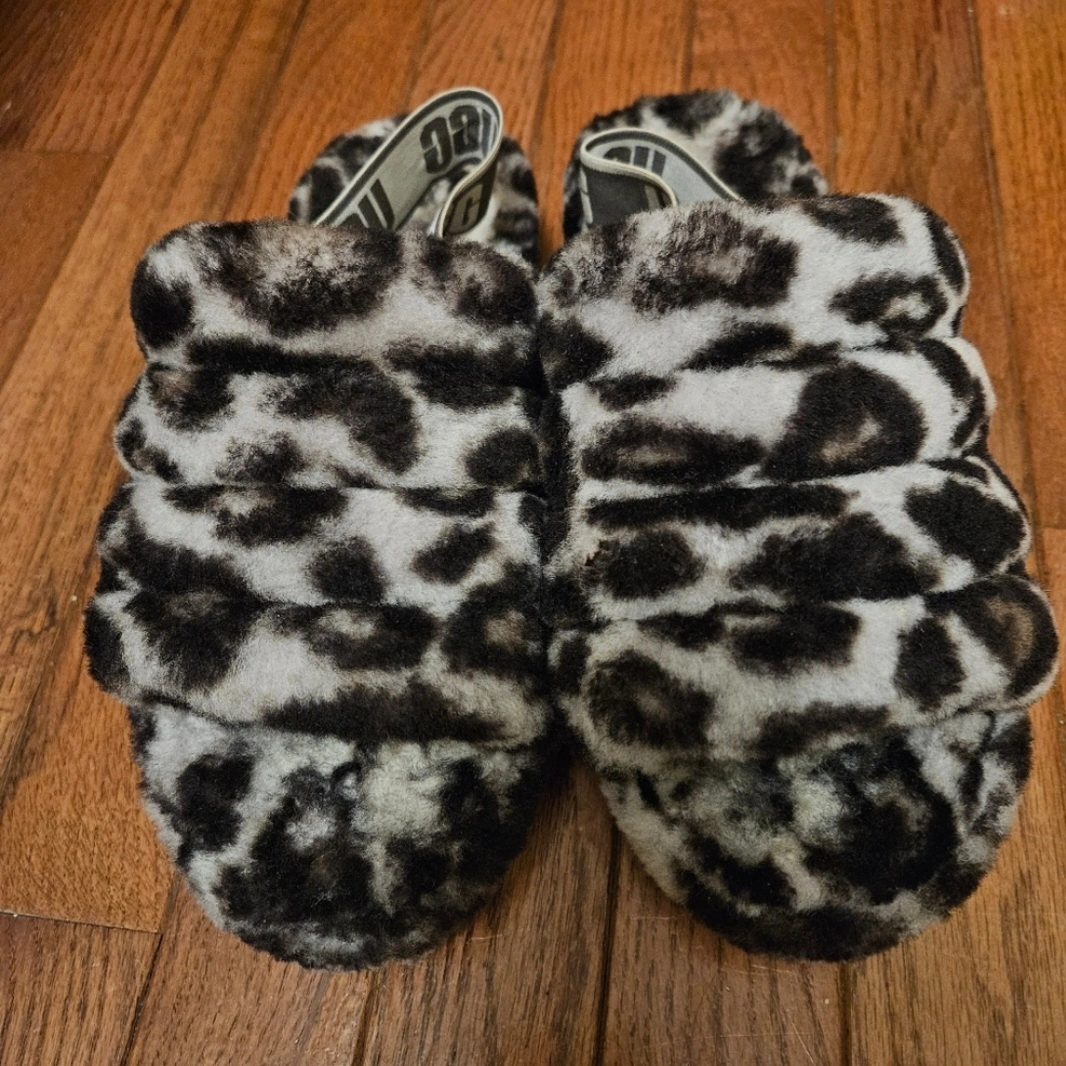 Super cute UGG Fluff Yeah slippers in a fun leopard print! Size 7 and in almost new condition. These are so comfy and perfect for wearing around the house