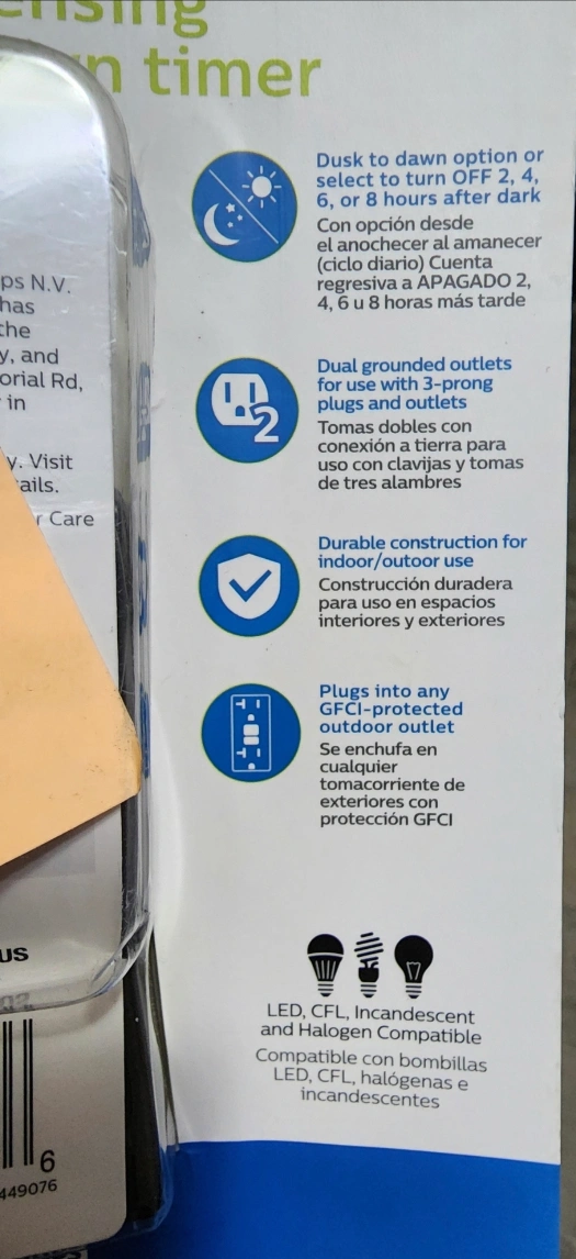 Brand New Philips Light-Sensing Countdown Timer 2-8 Hours