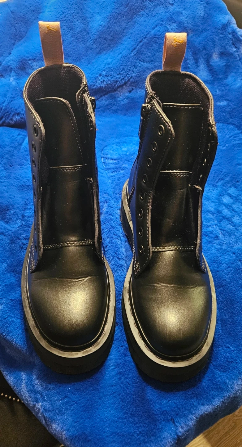 Buy & SellDr. Martens Black Leather Zip BootsDr. Martens Black Leather Zip Boots$100Classic black Dr. Martens boots. Features side zippers and the iconic AirWair heel loop. Leather construction with a durable sole.ConditionLike newSize7WHERE TO MEETHowe & DavieView MapSELLERverifiedErikaDowntown1578 reviews0 chats·0 favorites·25 viewsSEND CHAT TO SELLERHi Erika! I’m interested in your listing.Hi Erika! I’m interested in your listing.Get the Karrot app to chatSign In to chat
