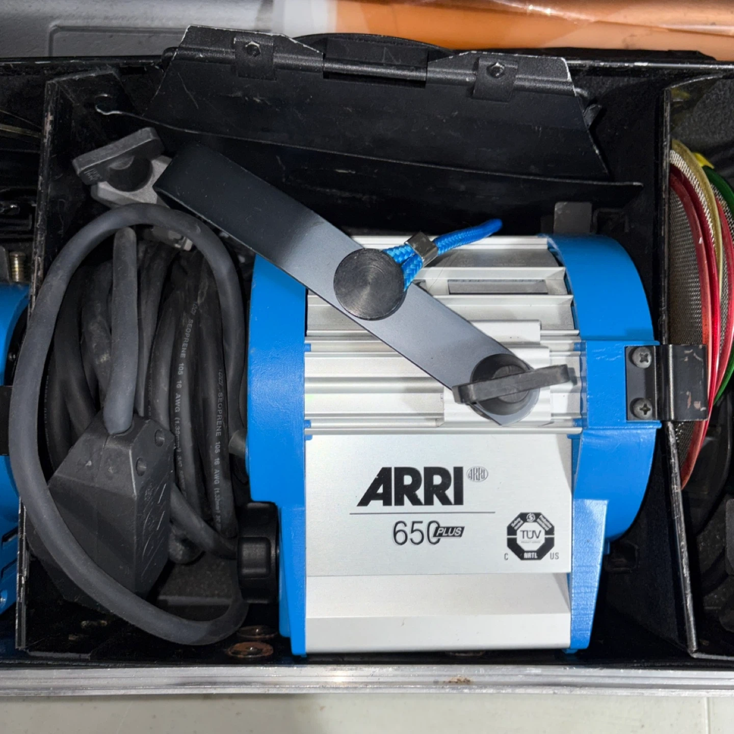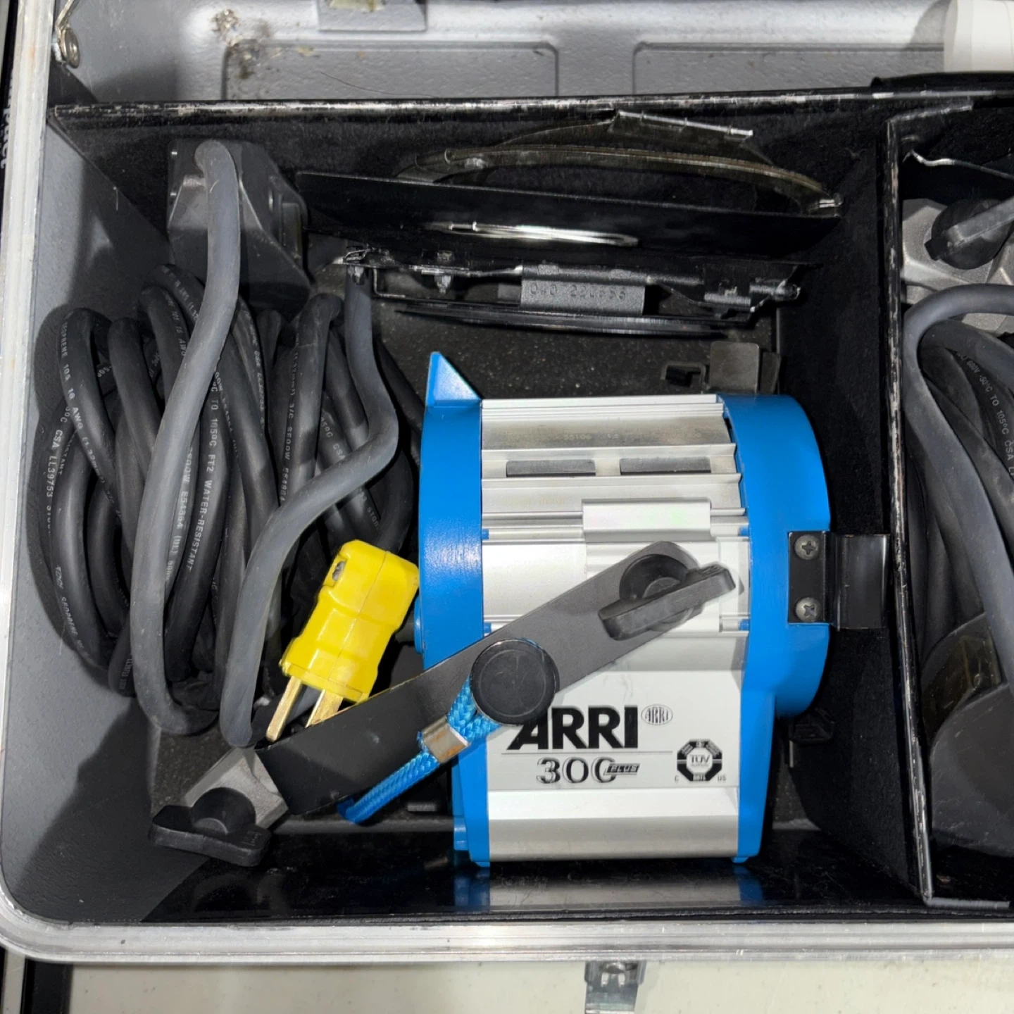 This listing includes two ARRI PLUS film lights, a 300W and a 150W, also a 650plus in a protective carrying case. Plus a stand for each light They're designed for professional lighting needs. The kit contains the lights, all necessary cables, and the case for transport and storage.