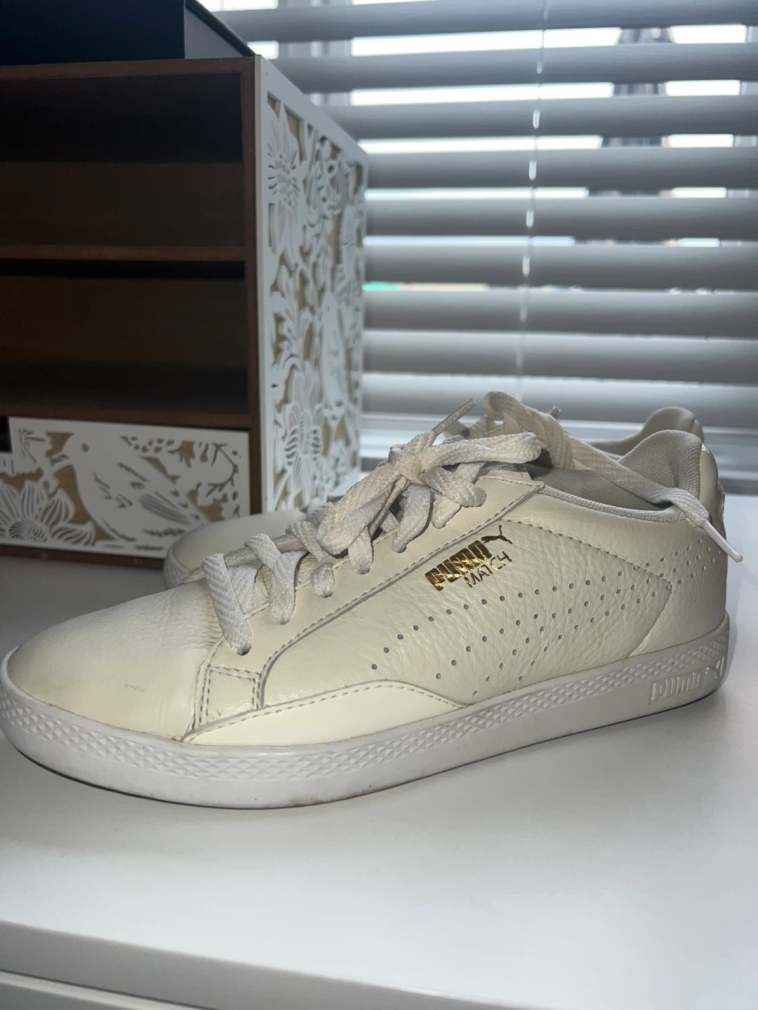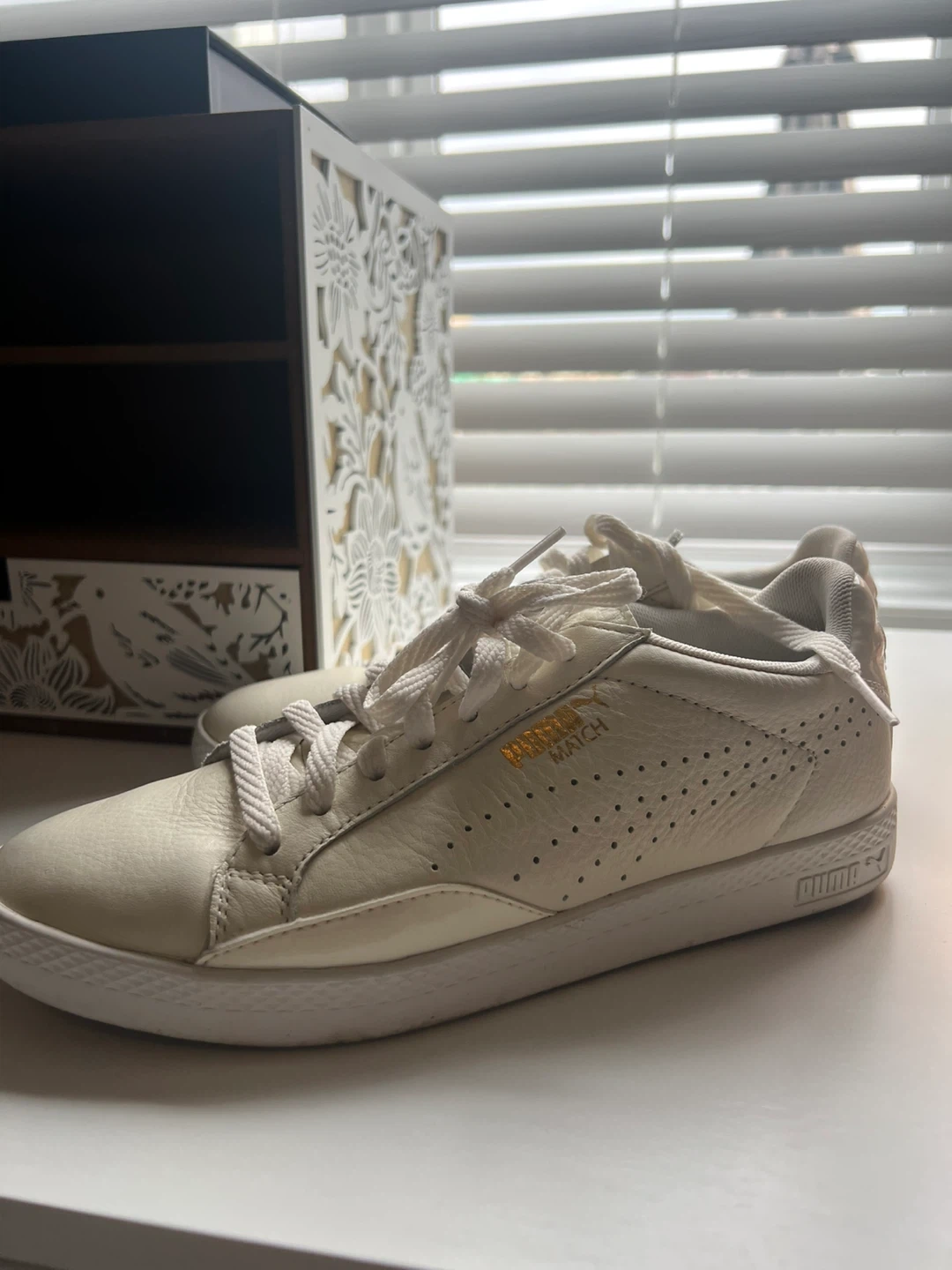 10Selling a pair of Puma Match women's sneakers in size 7! These are a stylish and comfortable option for everyday wear. The classic design features the iconic Puma logo. They're in great shape and ready for a new home!