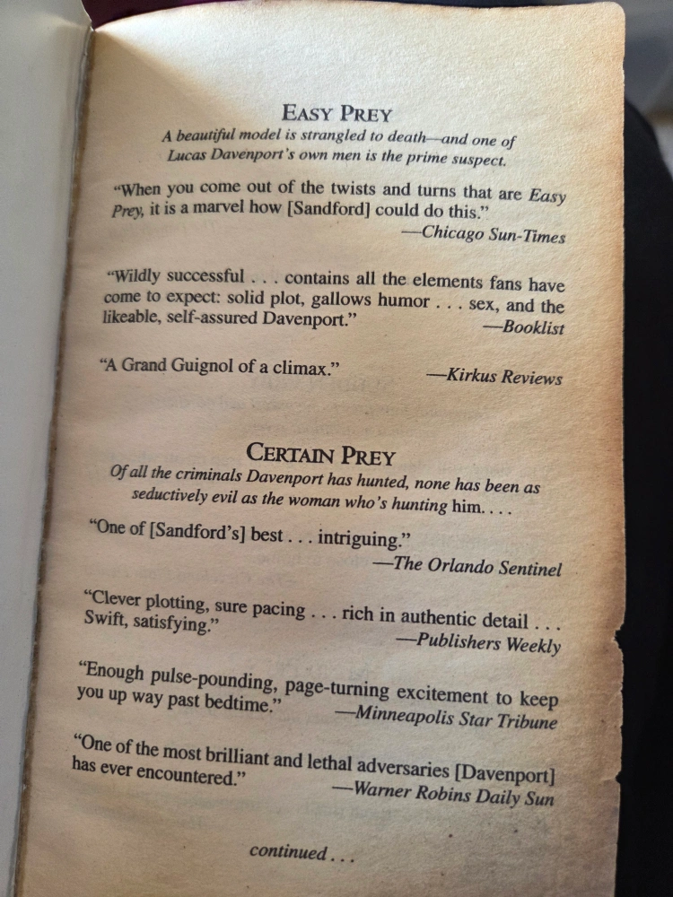 Selling the book Chosen Prey by John Sandford! It's part of the Lucas Davenport series. A thrilling read!