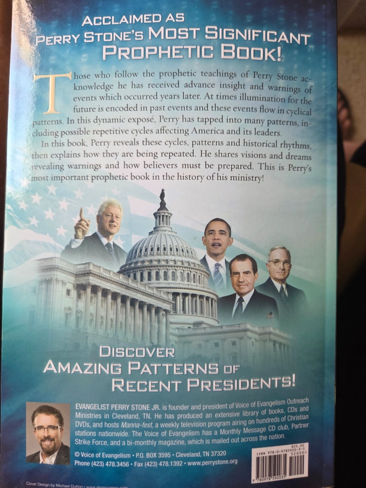 Selling the book 'Deciphering End-Time Prophetic Codes' by Perry Stone. This book reveals America's past, present, and future events, including warnings and patterns for leaders. It explores cyclical and historical biblical patterns. Acclaimed as Perry Stone's most significant prophetic book!