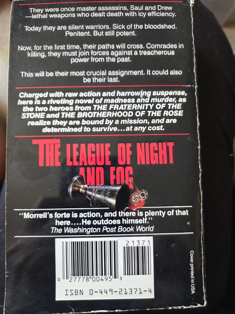 Selling The League of Night and Fog by David Morrell. It's a high-powered thriller by the bestselling author of The Fraternity of the Stone. A riveting novel of madness and murder!