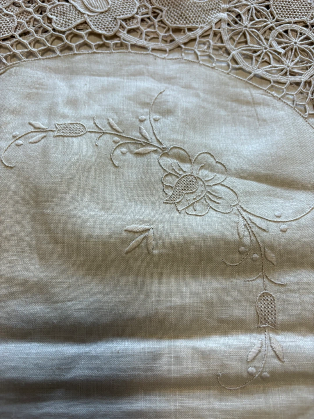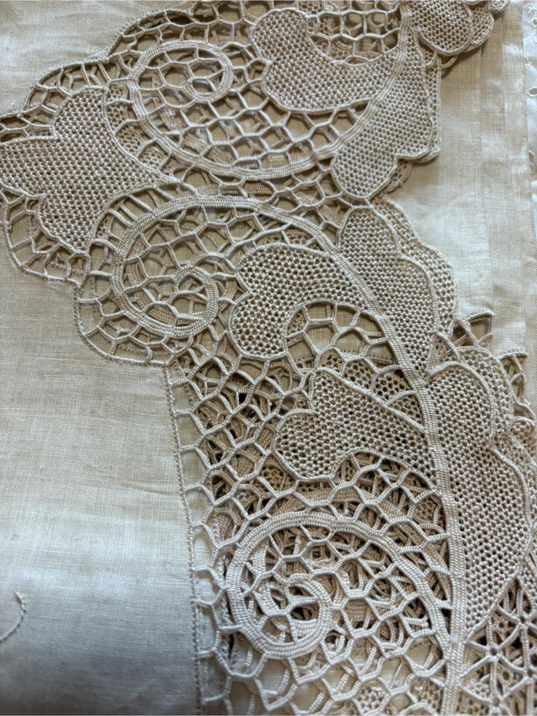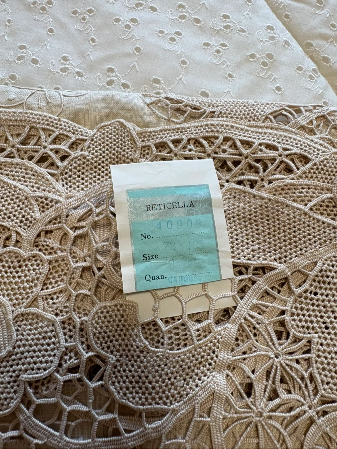 This exquisite, new Reticella linen set features a beautiful lace design, perfect for adding a touch of elegance to any dining or living space; includes a 72x108 inch tablecloth and napkins. This tablecloth is in pristine condition and with its delicate lace and refined embroidery, it promises to transform ordinary meals into unforgettable feasts. If the ad is up, it's available! Ready to give your table a glow-up!